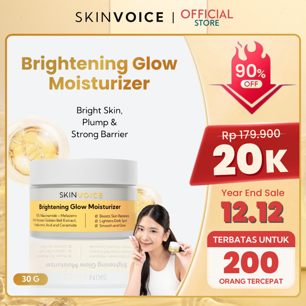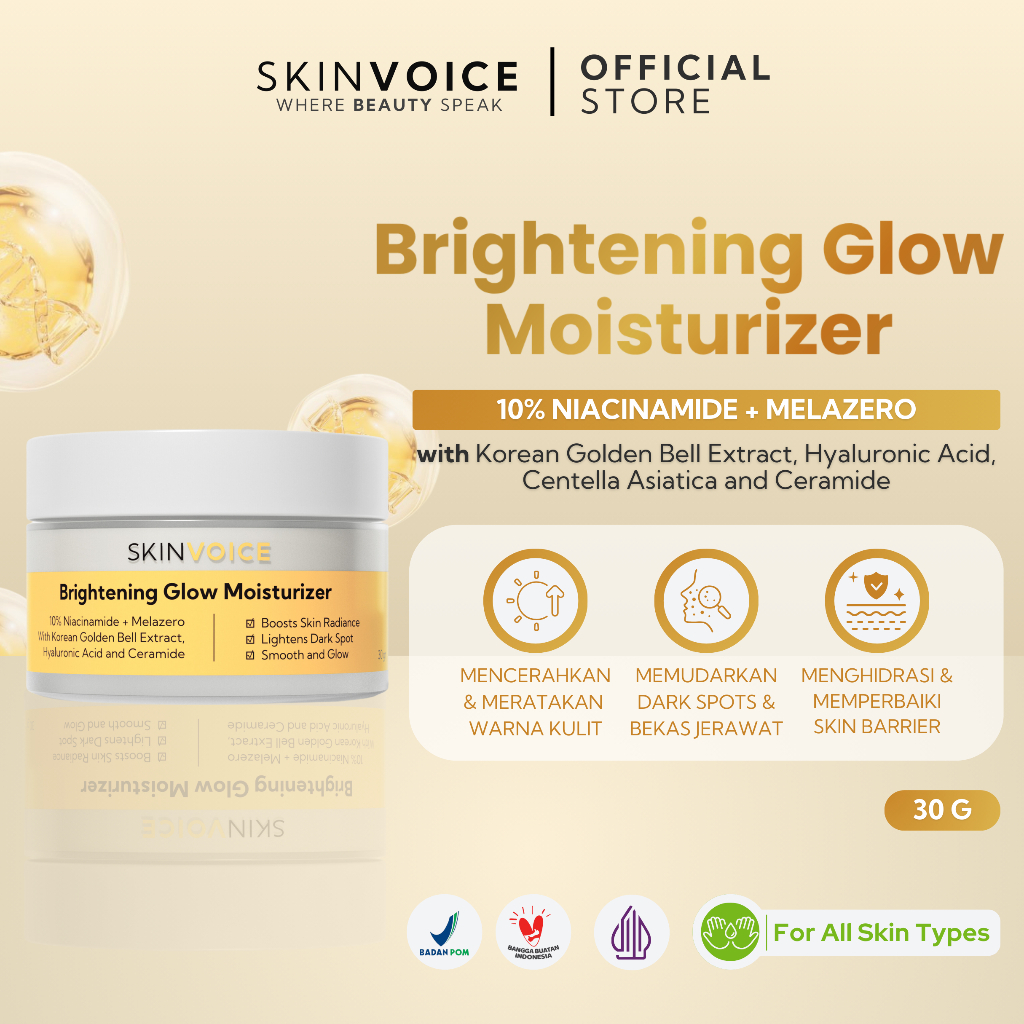 SKINVOICE Brightening Glow Moisturizer 30g - Cream Pemutih Wajah Skin Barrier Day Cream Night Cream
