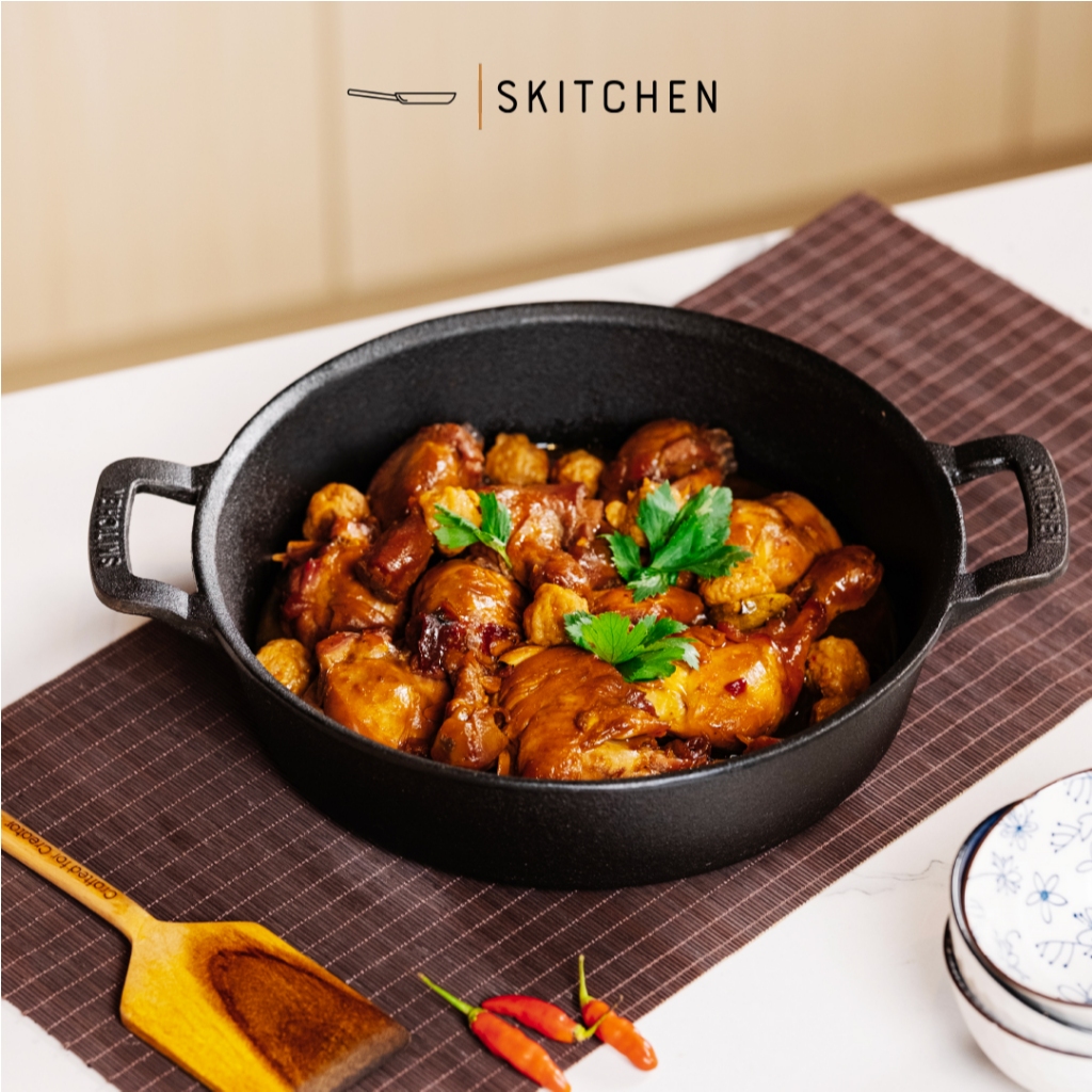 SKITCHEN Cast Iron Bangkok Braiser Pan 30 cm – Panci Kuali Besi Cor Premiun Panggangan Anti Gores