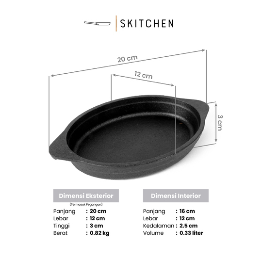 SKITCHEN Cast Iron Chicago Casserole (16 cm) - Panci Wajan Besi Cor Premium, Masak Saji Sekaligus