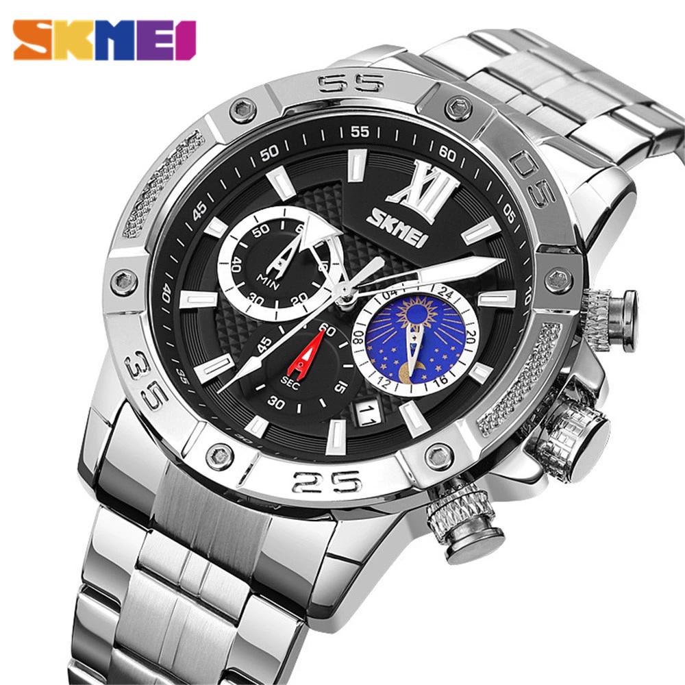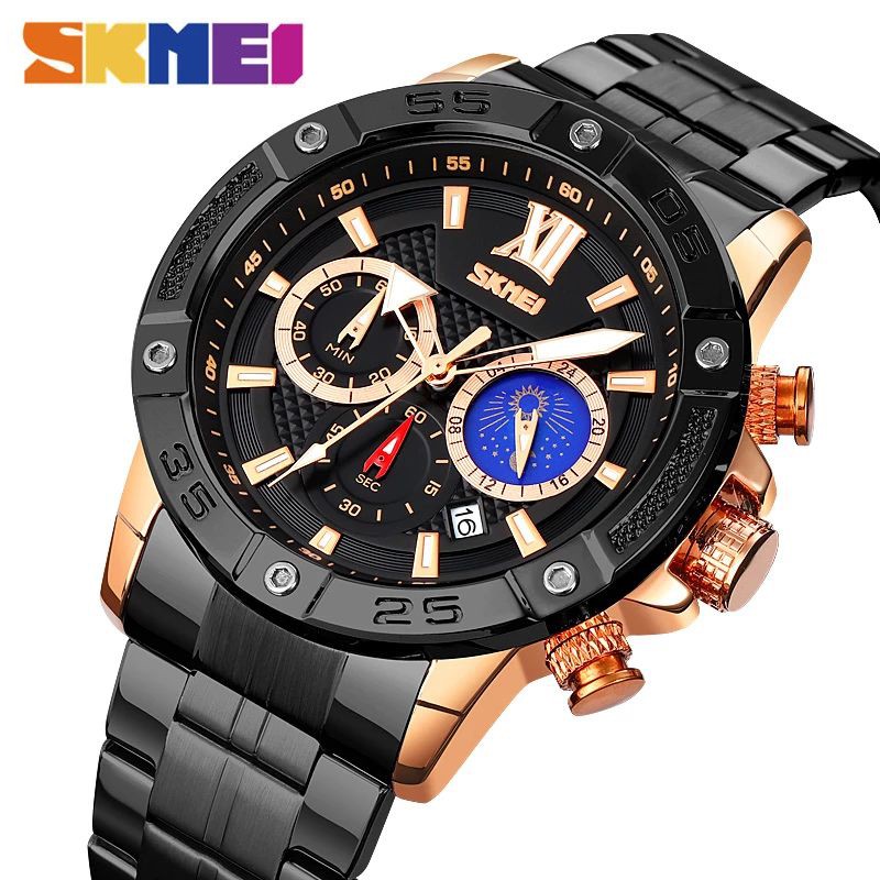 SKMEI 9235 Jam Tangan Pria Analog Chronograph Casual Quartz Tali Stainless MGOS