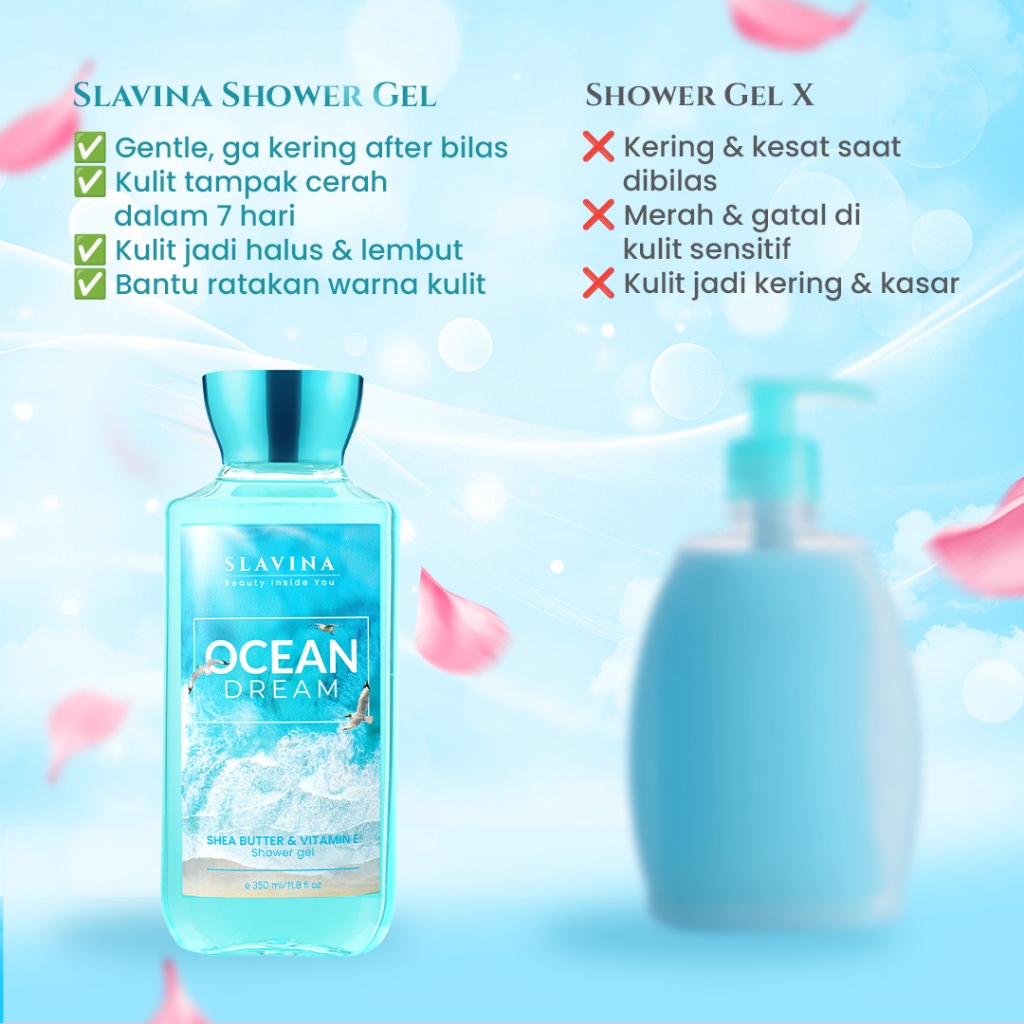SLAVINA Shower Gel Ocean Dream by Nagita Slavina – Sabun Mandi Cair Wangi Parfum Mewah, Body Wash Melembabkan Kulit Dengan Shea Butter & Vitamin E, Sabun Mandi Wangi Tahan Lama