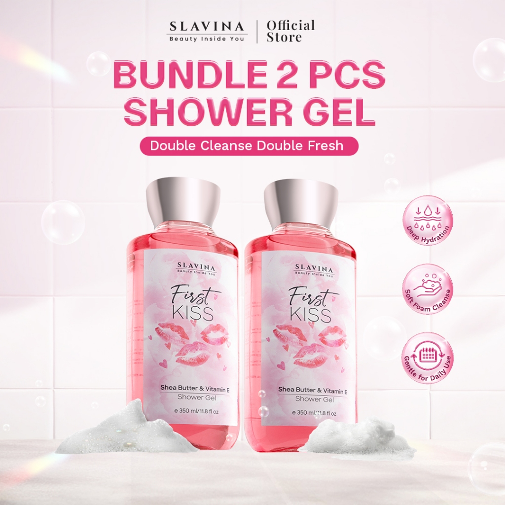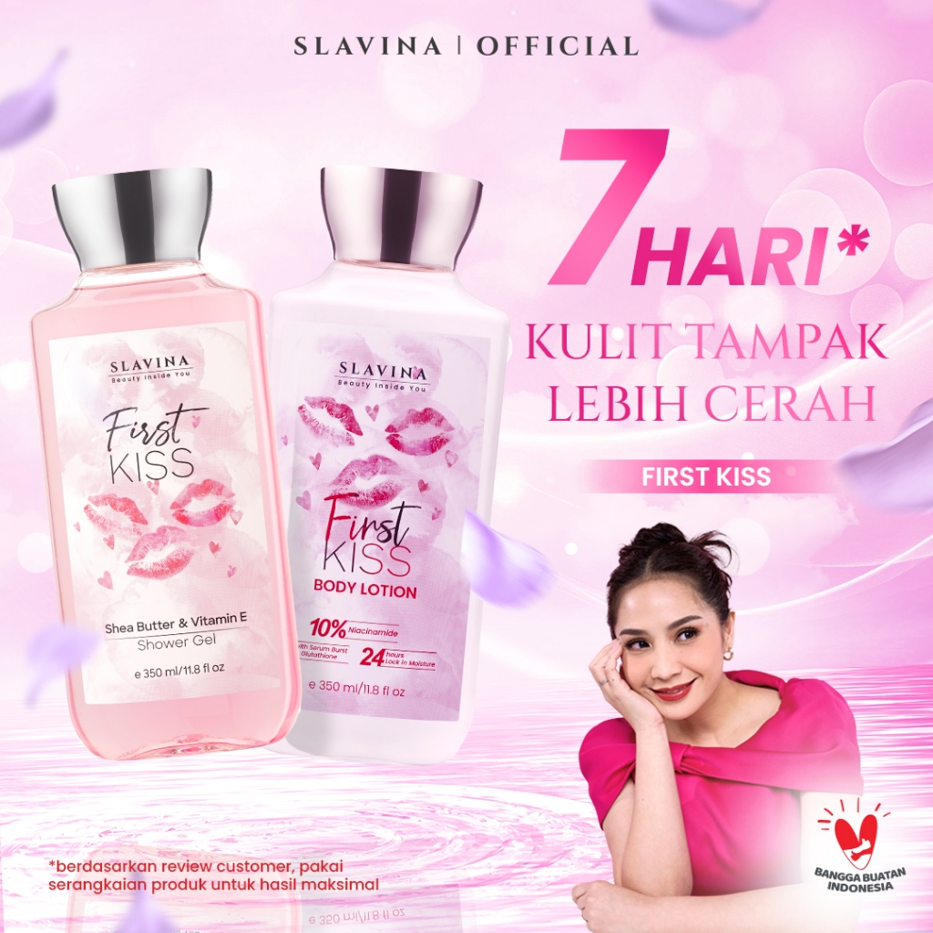 SLAVINA Shower Gel First Kiss by Nagita Slavina – Sabun Mandi Cair Wangi Parfum Mewah Dengan Shea Butter & Vitamin E, Body Wash Melembabkan dan Menutrisi Kulit Agar Lembut Cerah Terawat