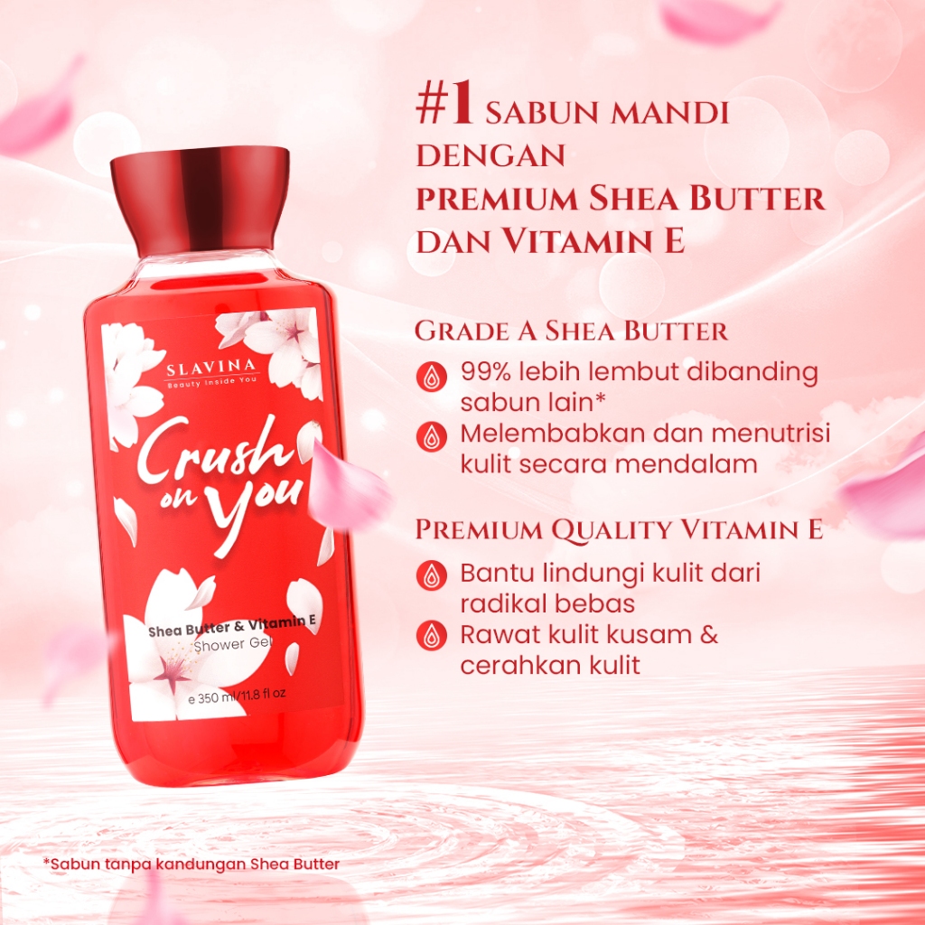 SLAVINA Shower Gel Crush On You by Nagita Slavina – Sabun Mandi Cair Wangi Parfum Mewah Dengan Shea Butter & Vitamin E, Body Wash Melembabkan Dan Menutrisi Kulit, Sabun Mandi Wangi Tahan Lama