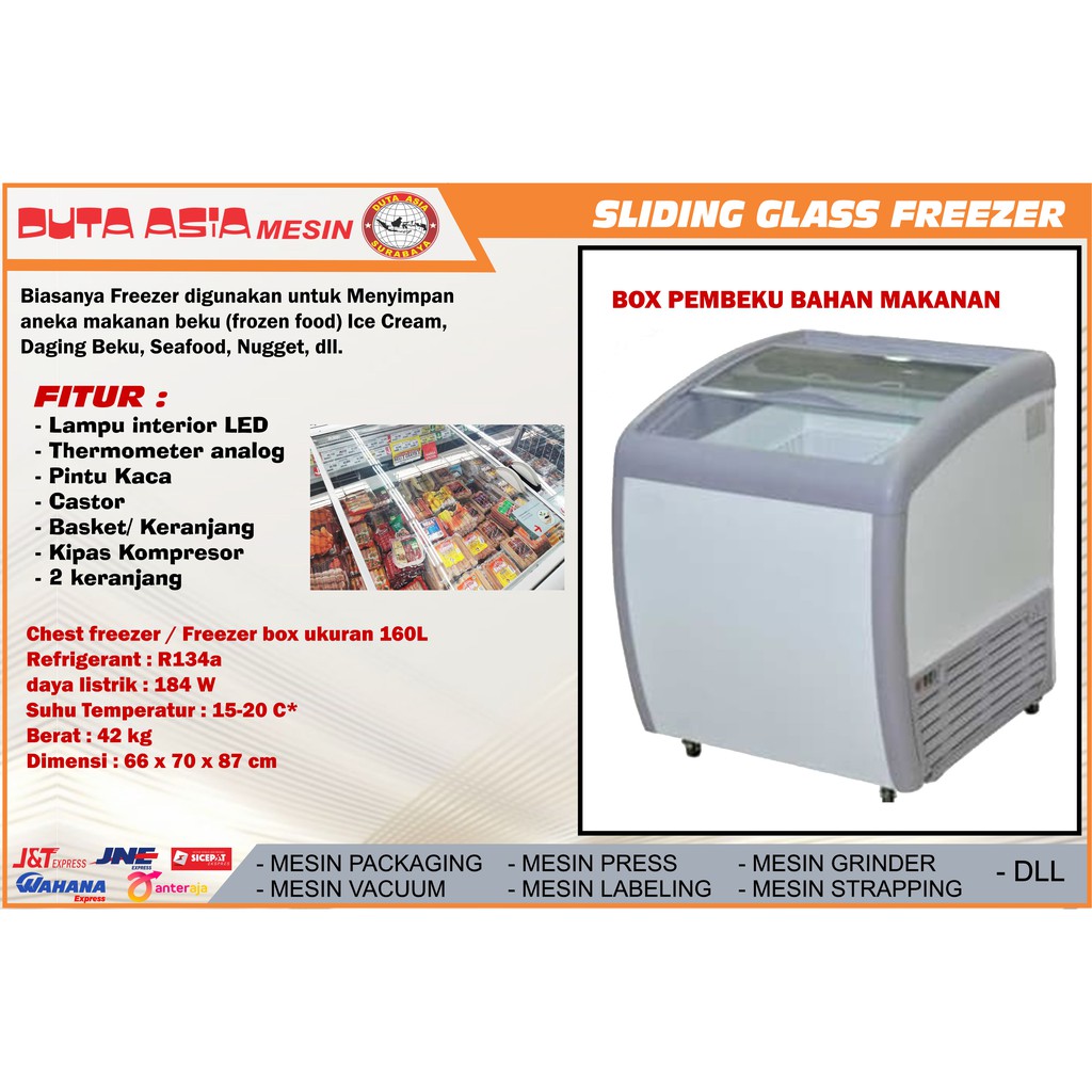 SLIDING CURVE GLASS DOOR FREEZER/ BOX PEMBEKU PINTU KACA MELENGKUNF VOLUME 160L