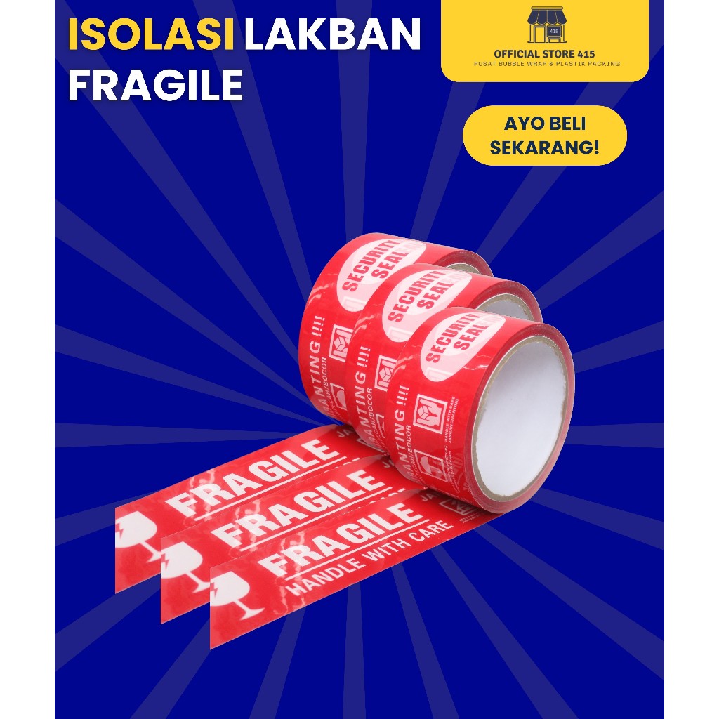 SLOP Solasi Lakban 1 Slop Fragile Merah Putih T7 45mmx72yard Selotip