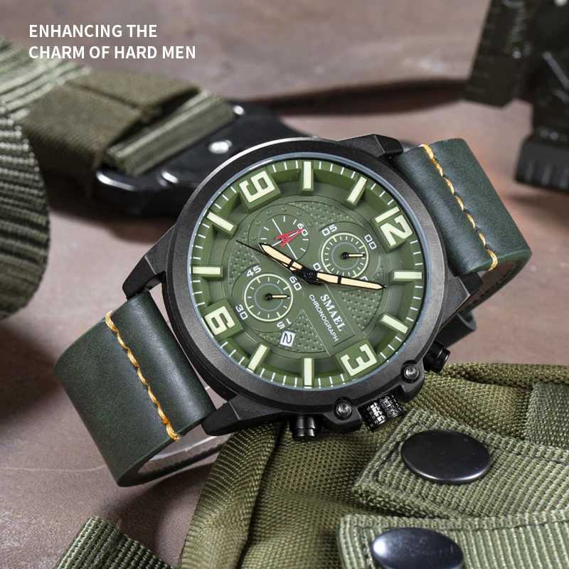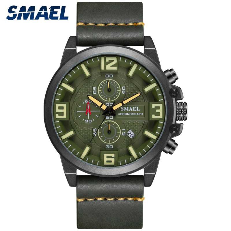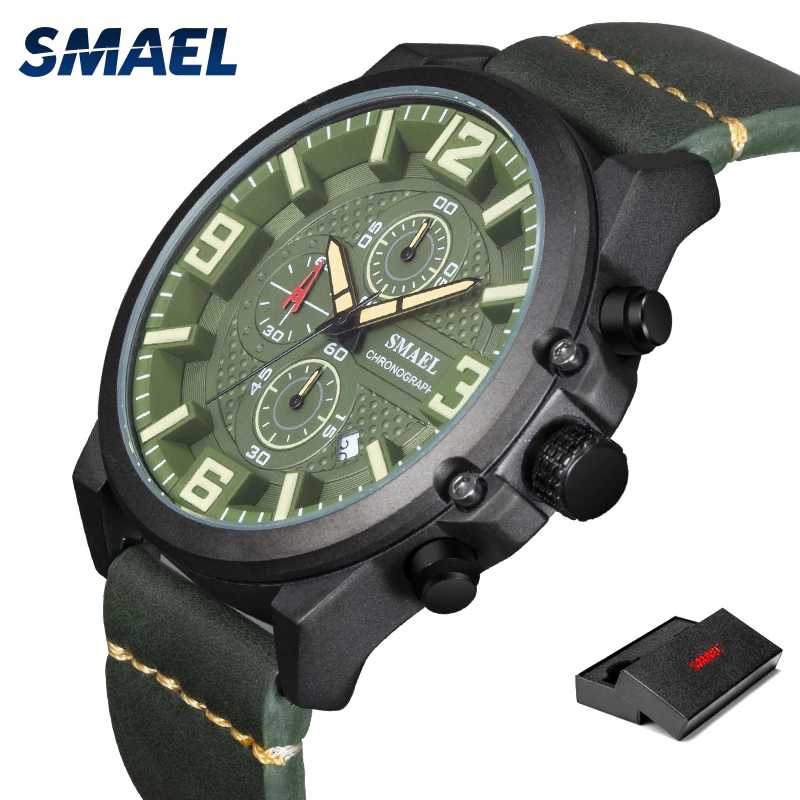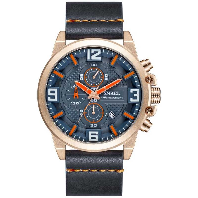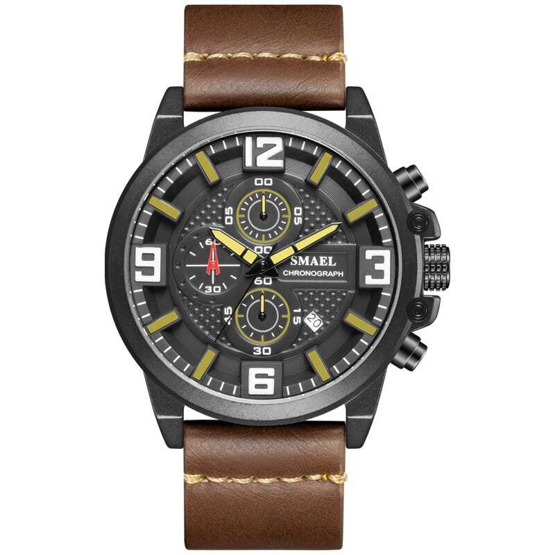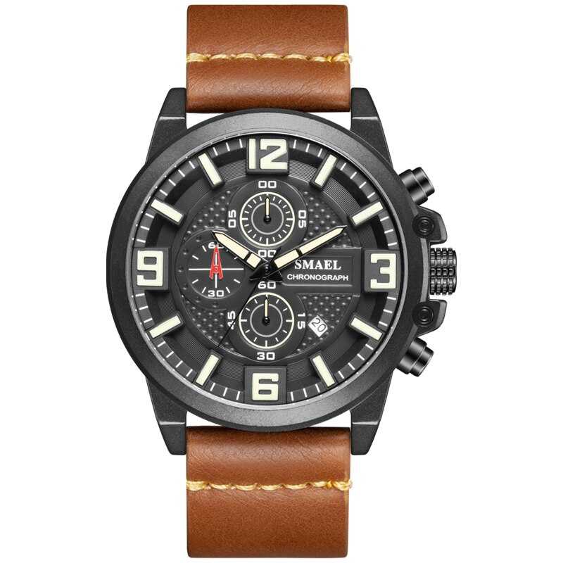 SMAEL NEW Fashion Mens Watches Sport Luxury Alloy Watch Men Casual SL-9073 Leather Waterproof Watch