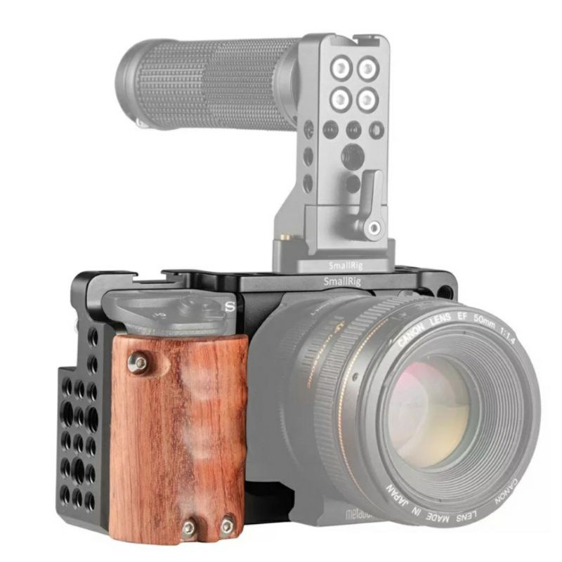 SMALLRIG Camera Cage Rig Kit With Wooden Hand Handle Grip Handgrip Body Camera Kamera Sony Alpha A6000 A6300 2082