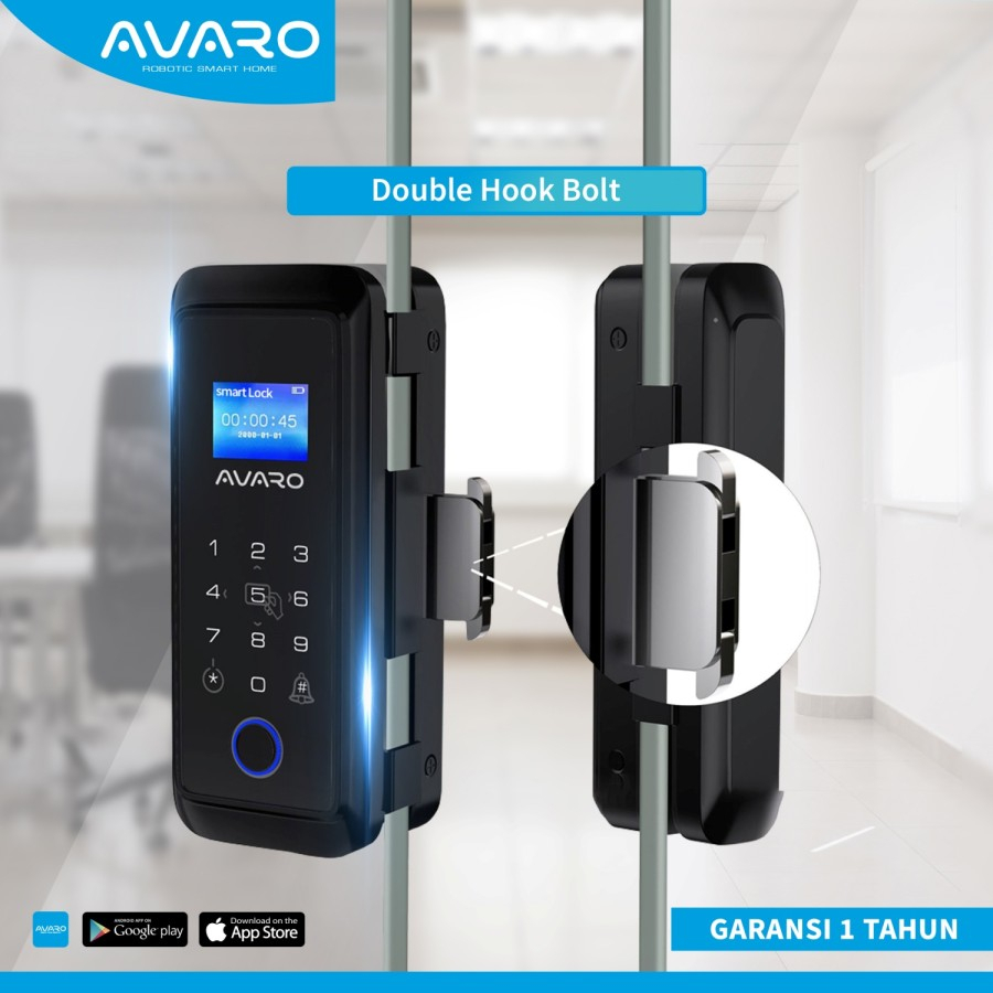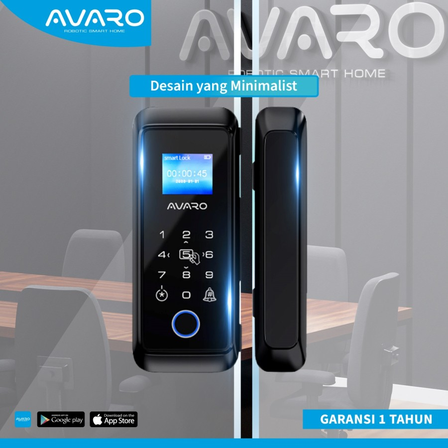 SMART DOOR LOCK AVARO SL03 SMARTDOOR LOCK GLASS DOOR SMARTLOCK PINTU KACA FRAMELESS