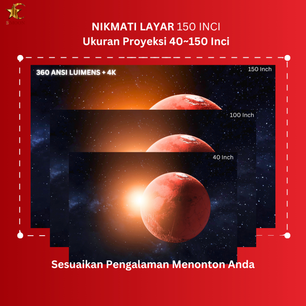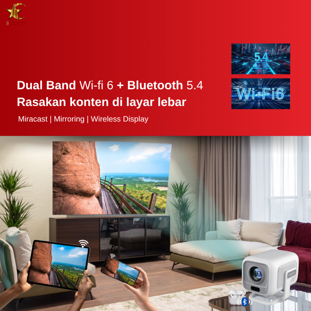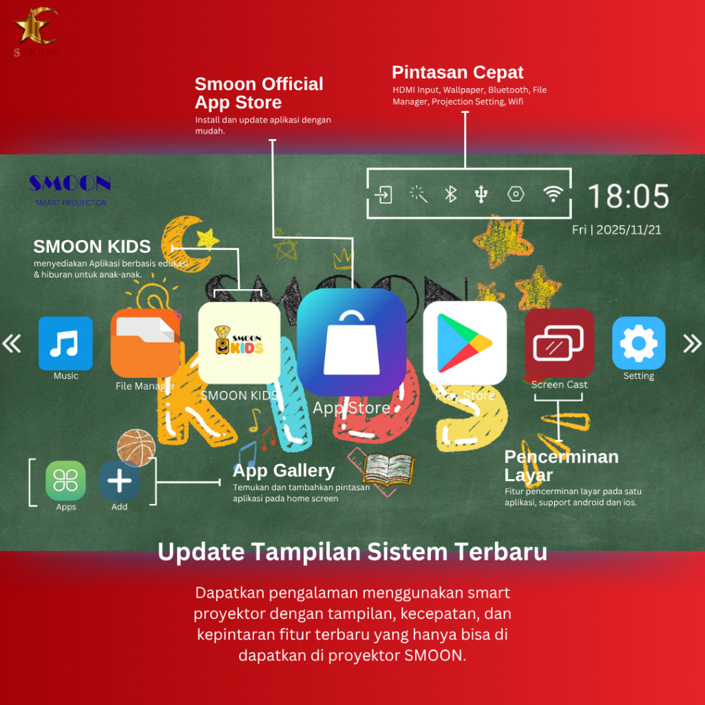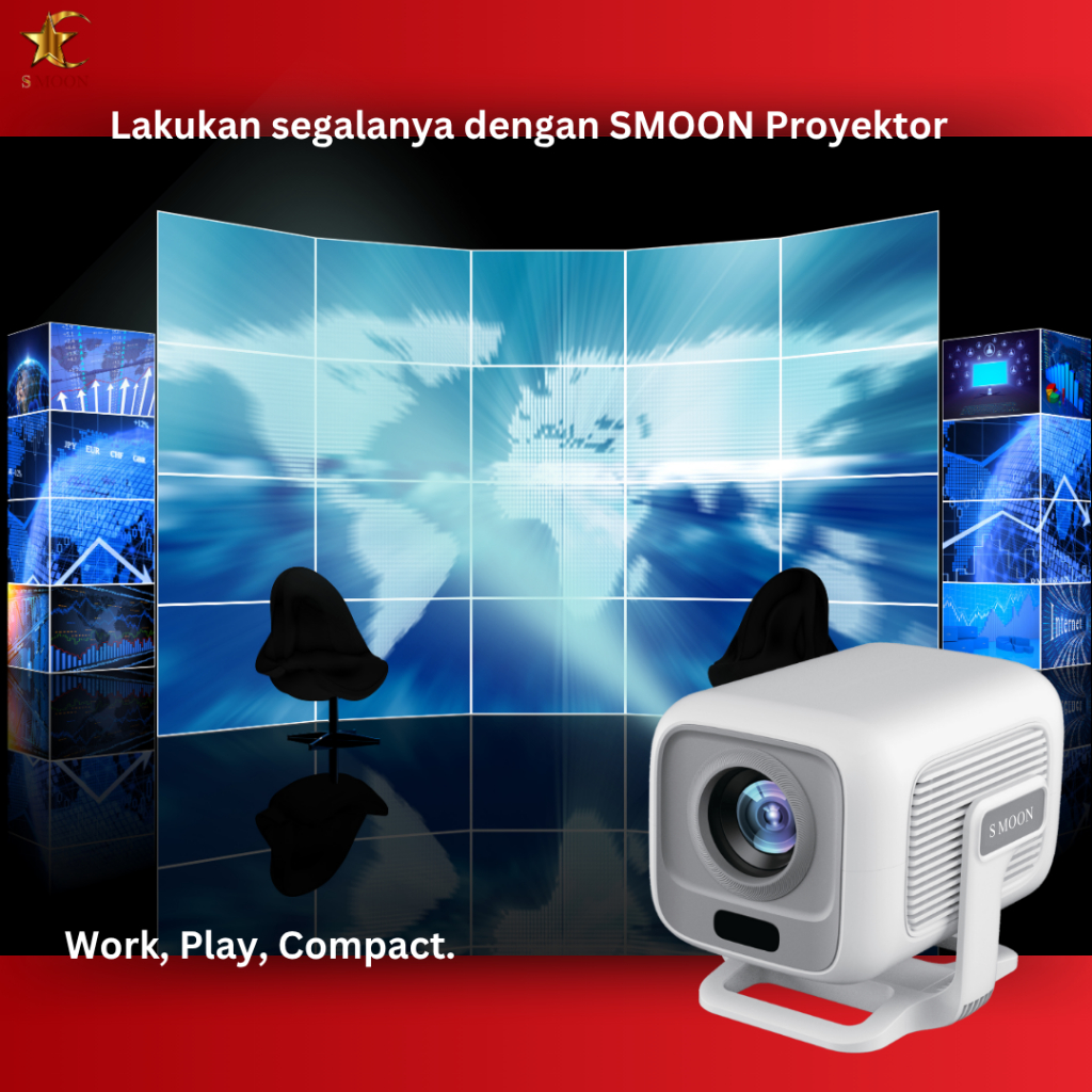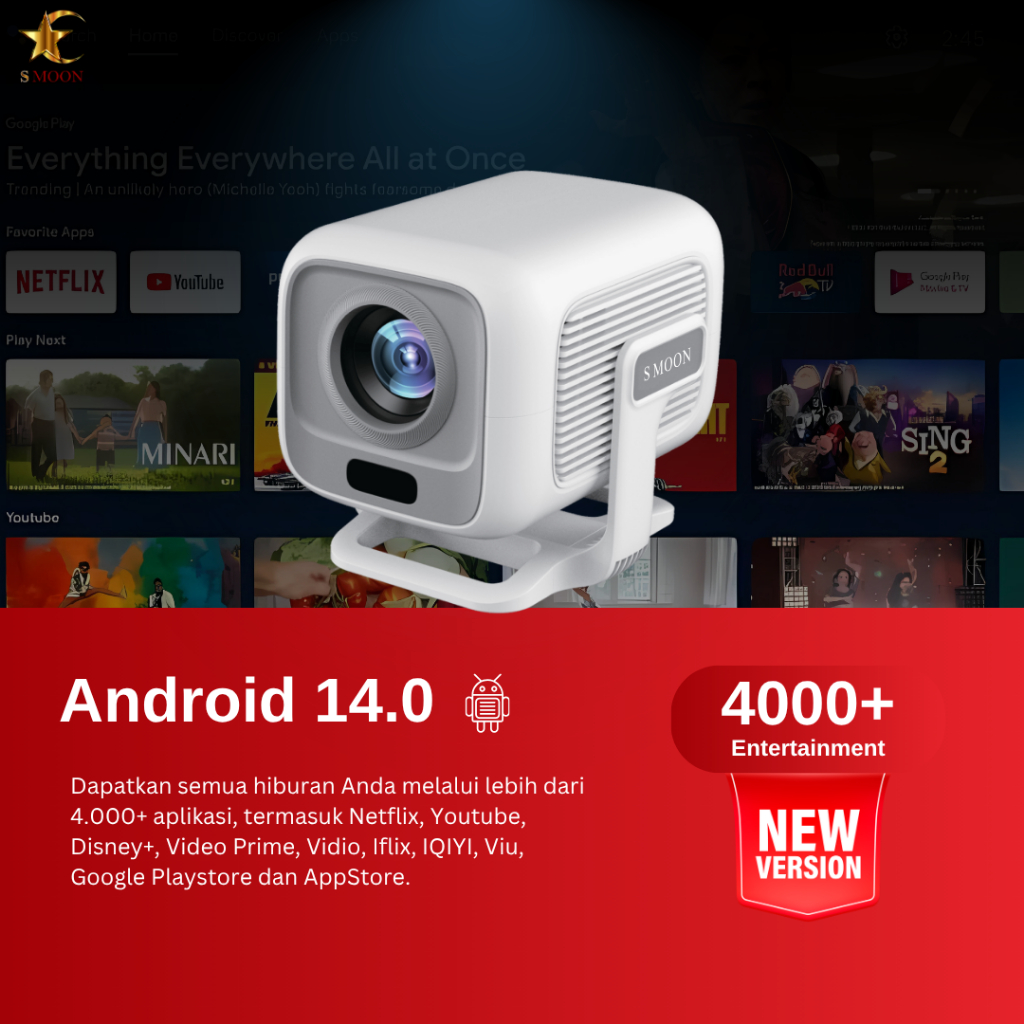 SMOON 350 Pro Projector LCD TV - Proyektor Pintar - 350 ANSI Lumens - TV Android - Fokus Otomatis - Netflix - Google TV - YouTube - Include Kabel HDMI