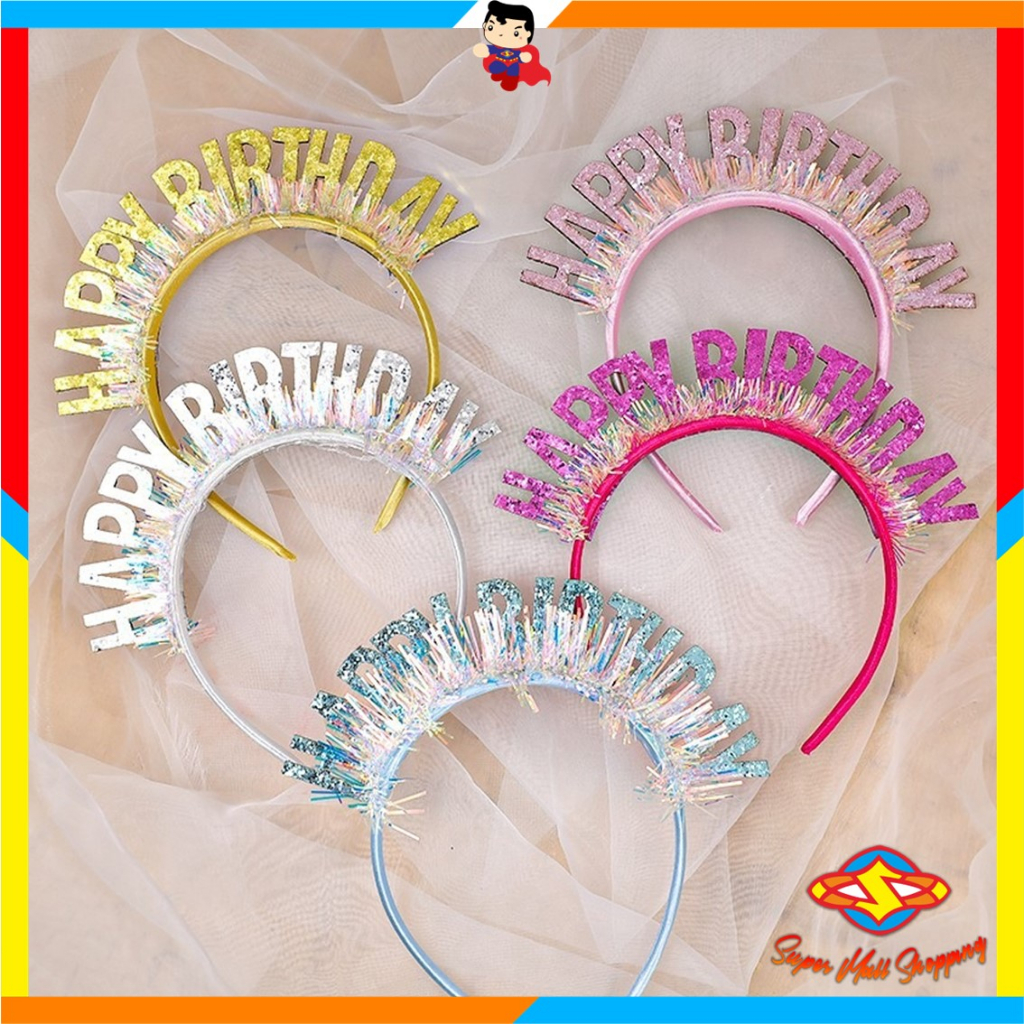 SMS Bando Happy Birthday Gliter Rumbai Bando gliter Pesta Ulang Tahun Bando Model Happy Birthday Metalik