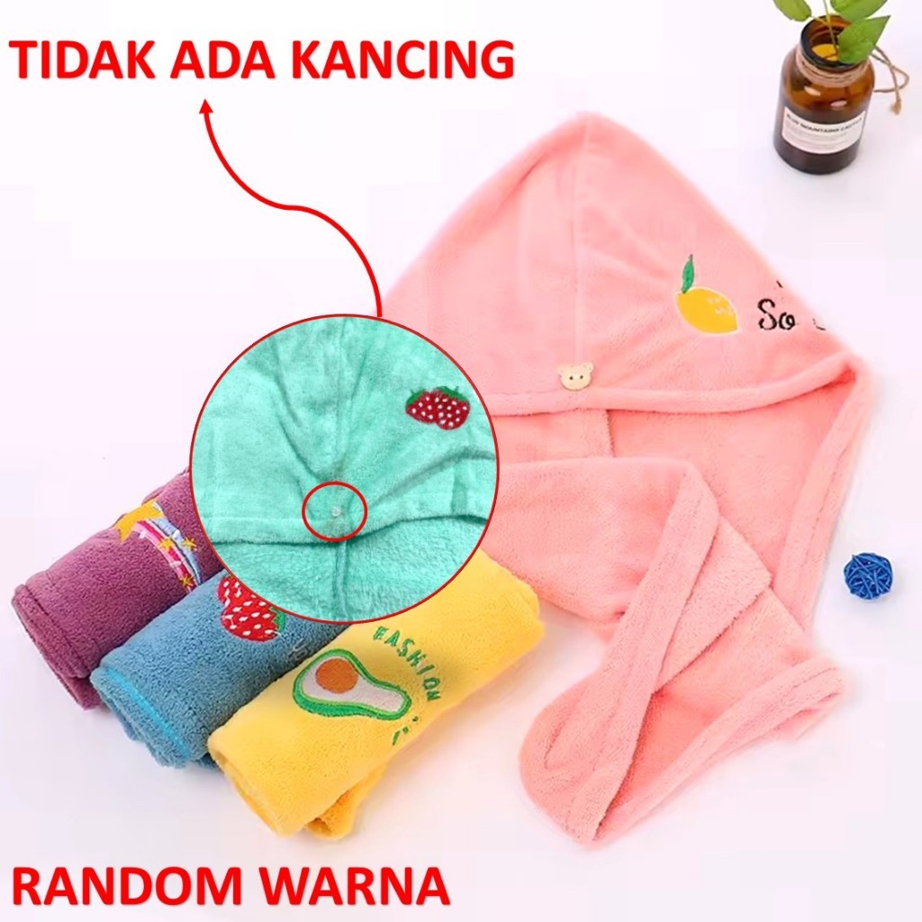 SMS Handuk Keramas High Quality Karakter Cepat Kering Fashion Wanita Magic Towel Hair Towel Turban Microbulu Handuk Kancing Kramas Onehand