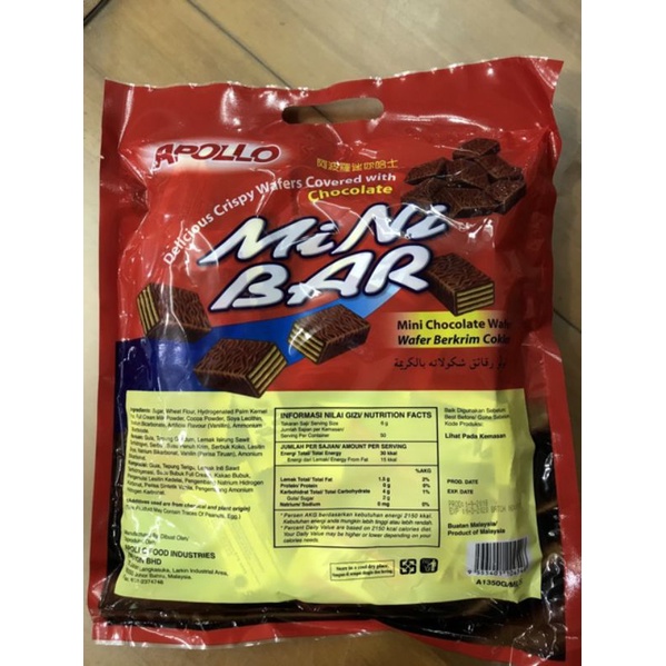 SNACK WAFER APOLLO MINI BAR 1 PACK 50PCS , SNACK WAFER COKLAT MINI BAR APOLLO MALAYSIA
