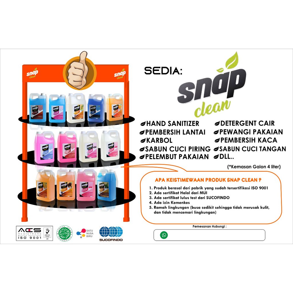 SNAP CLEAN,Pembersih lantai, Obat Pel, Floor Cleaner, 4ltr, khusus Bandung, LANGSUNG KIRIM, via OJOL