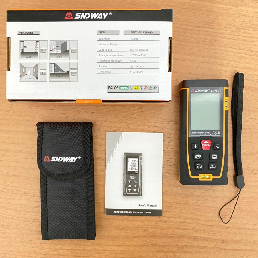 SNDWAY Meteran Laser Digital Distance 100 m meter SWTG-100