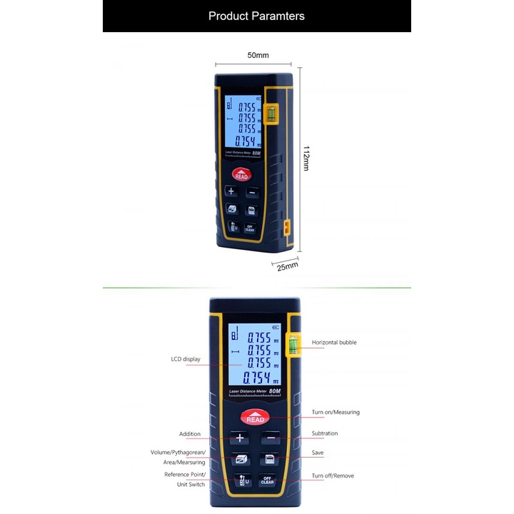 SNDWAY Meteran Laser Digital Pengukur Jarak Laser Meteran Perlengkapan Peralatan Bangunan Konstruksi Jarak Laser 100 Meter Garansi Toko