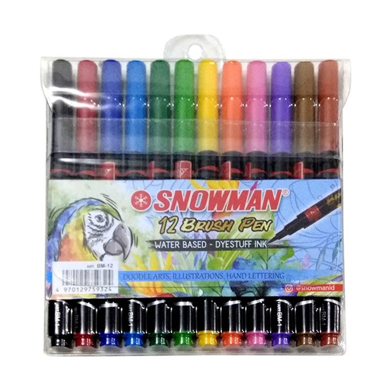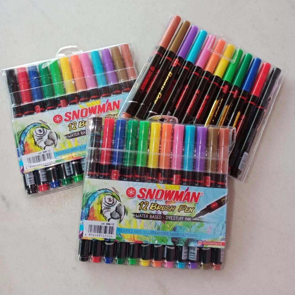 SNOWMAN Brush Pen Marker 12 Warna / SNOWMAN Spidol Kuas Kaligrafi 12 Warna