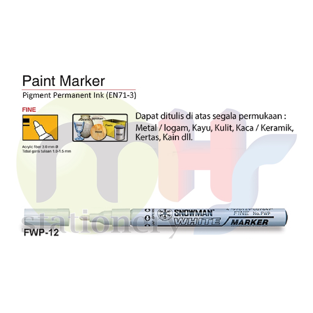 SNOWMAN Paint Marker Color Spidol Cat Permanen Warna logam plastik kain kaca kayu batu Extra Fine