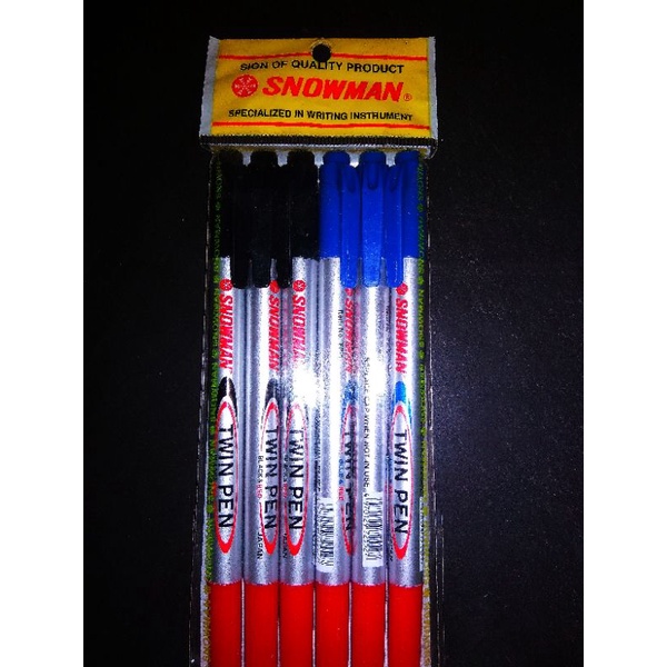 SNOWMAN Spidol Twin Pen Spidol 2 Warna Spidol Bolak Balik isi 2 Warna Biru Dan Hitam ECER
