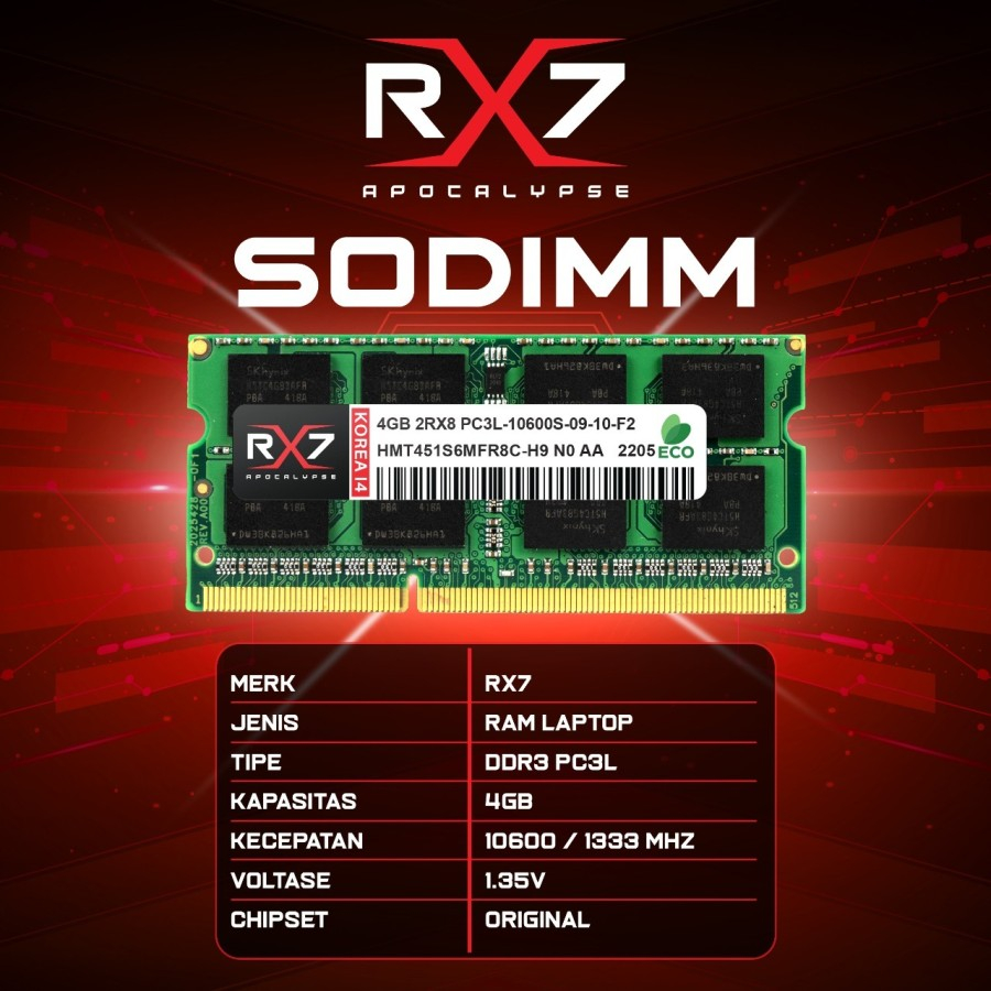 SODIM RX7 RAM LAPTOP RX7 DDR3L 4GB 10600 Mhz L 1.35V GARANSI