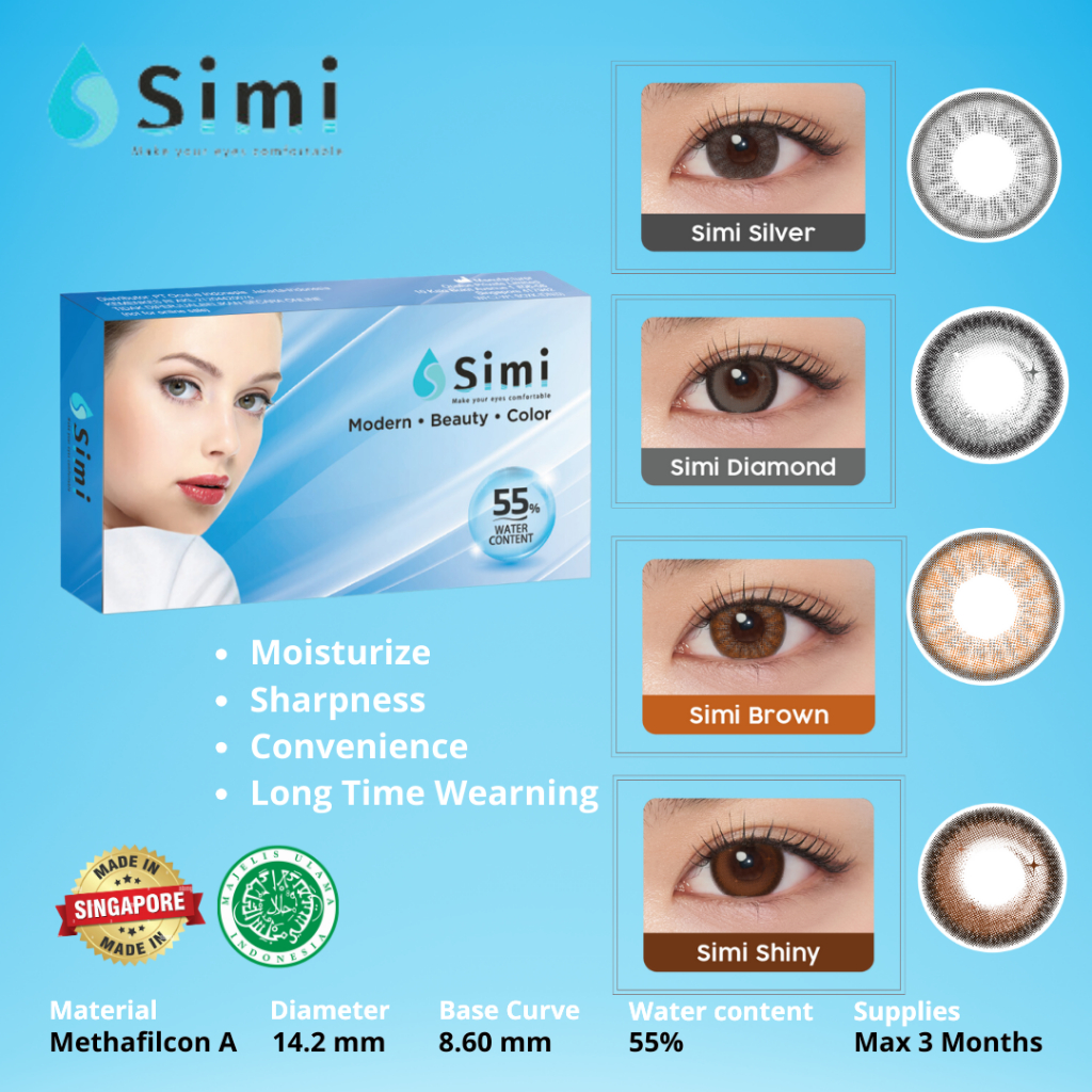 Simi Color Softlens Warna Natural Look Dia. 14.20 Made In Singapore Normal Minus -0.50 sd -6.00