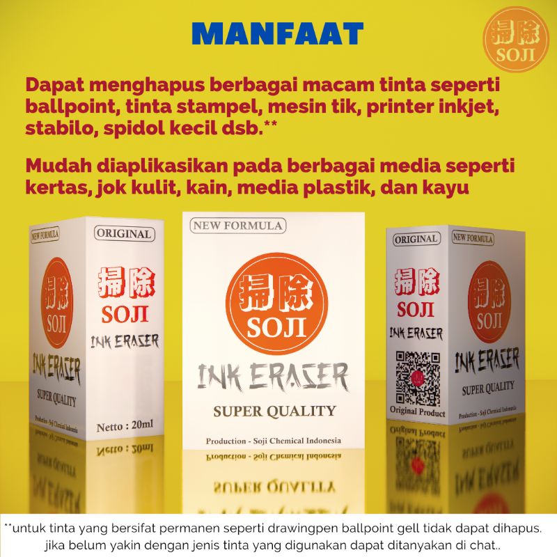 SOJI INK ERASER penghapus tinta bolpen, spidol dan stempel. GRATIS ONGKIR & FREE BUBBLE WRAP TEBAL!!