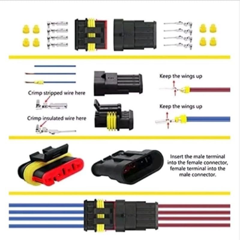 SOKET WATERPROOF PENYAMBUNG KEPALA KABEL SOCKET PIN SAMBUNGAN KONEKTOR VARIASI MULTIFUNGSI TAHAN AIR ANTI KONGSLET : LAMPU, KLAKSON SIRINE AUDIO MOBIL MOTOR 1 2 3 4 JALUR PIN AWG TANPA KABEL