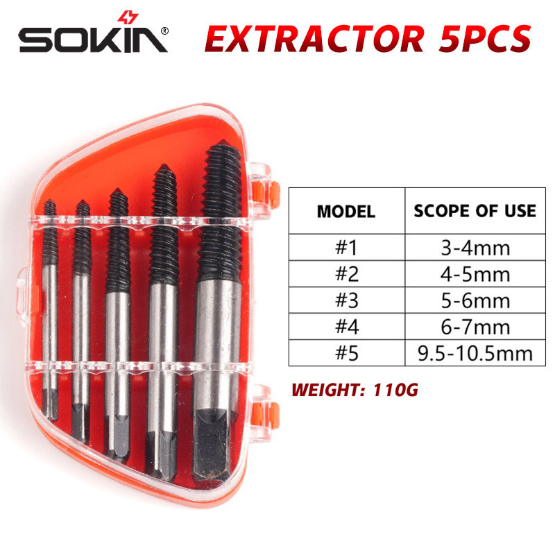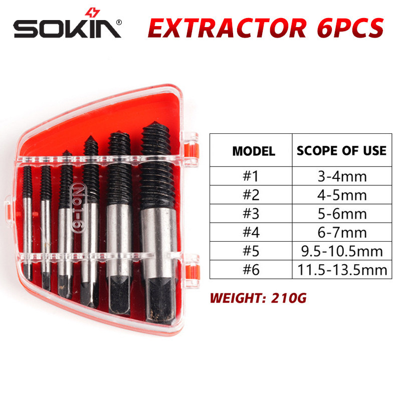 SOKIN Tools Screw Extractor Set 5-6Pcs Mata obeng Alat Pembuka Baut Rusak Damaged Screw Extractor Balik Set Pembuka Baut Patah Bolt Pipe Extractor