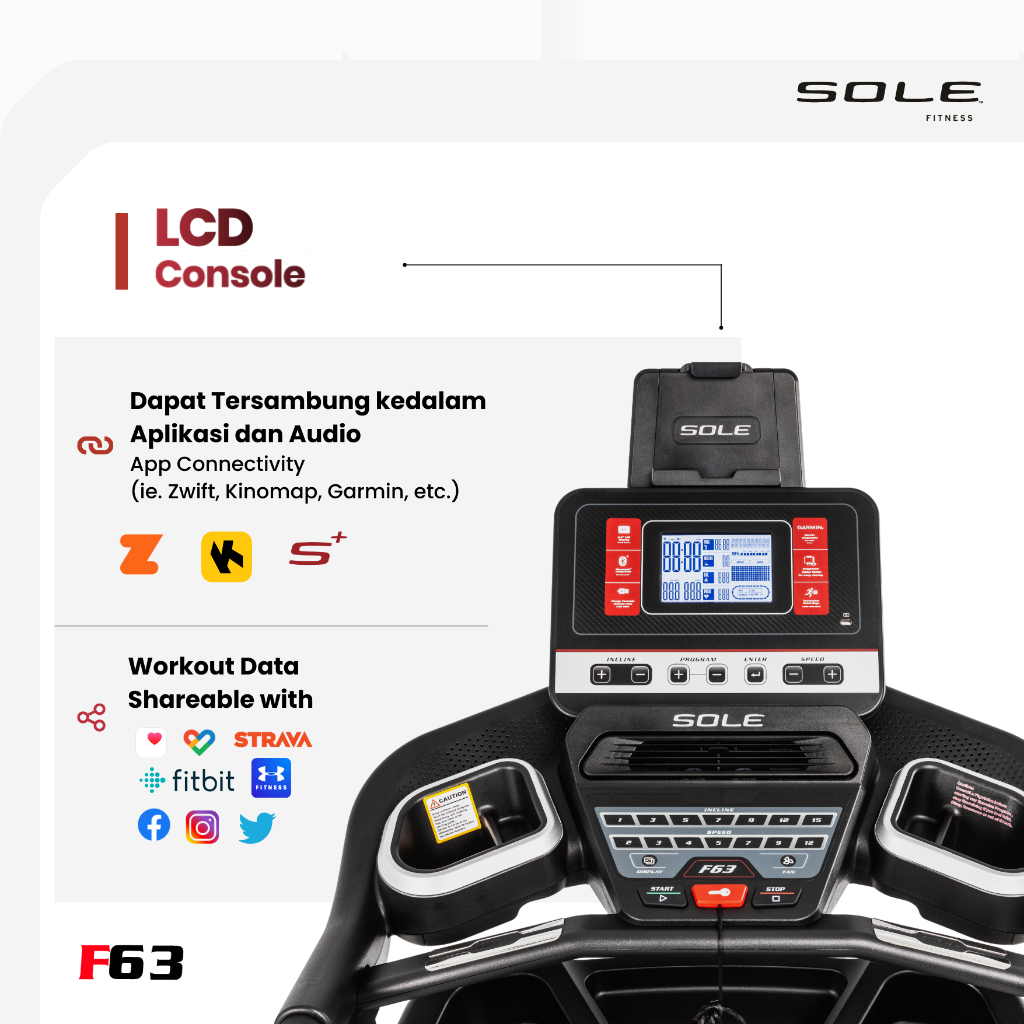 SOLE USA F63 Treadmill - Alat Fitness Treadmill Listrik Premium - Light Commercial Motor 3HP