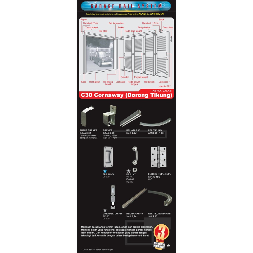 SOLID - REL BAWAH 10 SOLID GARAGE RAIL SYSTEM