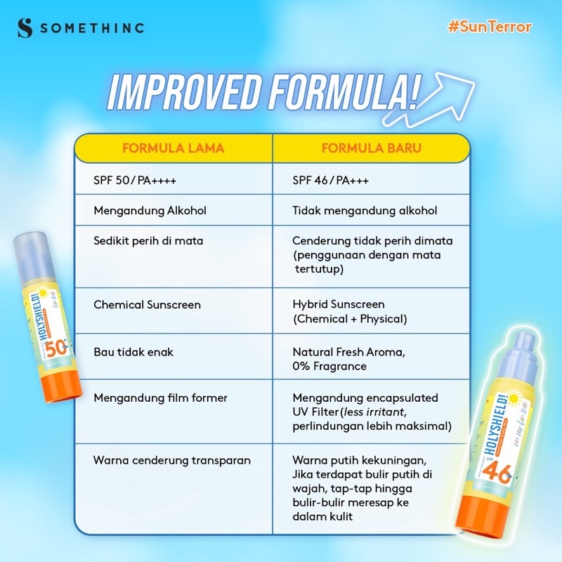SOMETHINC Glowing Up Suncreen Stick / Holyshield! Sunscreen Comfort Corrector Serum / Holyshield! Sunscreen Shake Mist SPF 46++++ / Holyshield UV Watery Sunscreen Gel SPF 50+ PA+++