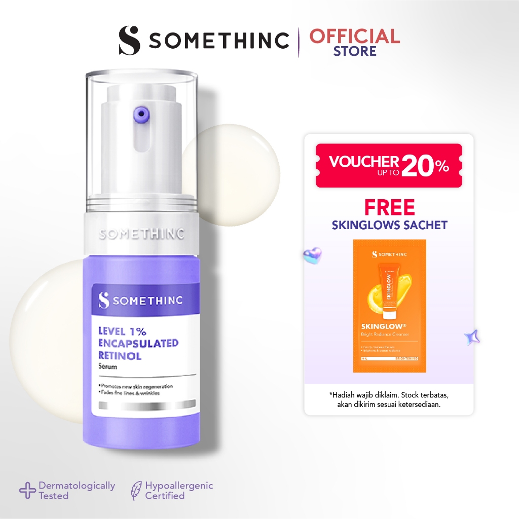 SOMETHINC Level 1% Encapsulated Retinol Serum - Menyamarkan Tekstur Kulit & Garis Halus, Serum Anti Aging, Mencegah Kerutan dan Pori Pori besar. Dark Spot, Renewal, Brighten, Smoothing Essence, & Prevent Premature, Retinol Pemula