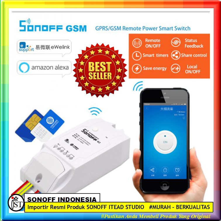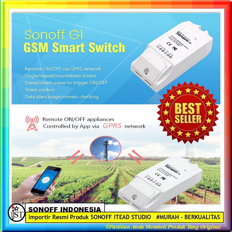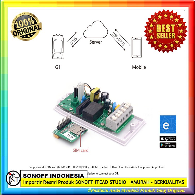 SONOFF G1 Saklar relay GPRS GSM Remote Power Smart Home Android IOS Switch Automation