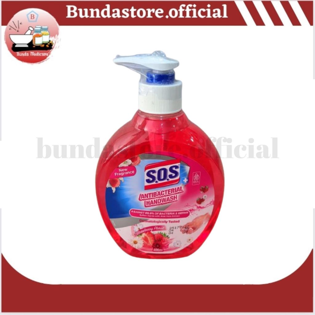 SOS Antibacteria Handwash Strawberry Floral Botol 400 Ml / Refill 300 Ml - Sabun Cair Pencuci Tangan Anti Bacterial (BOTOL DAN REFILL DIJUAL TERISAH)