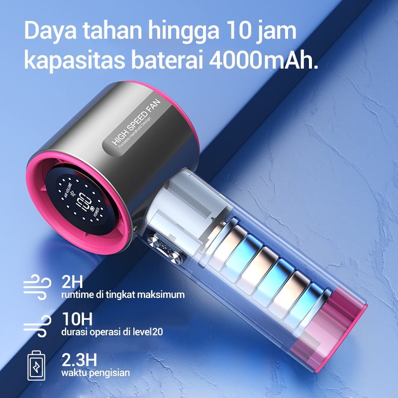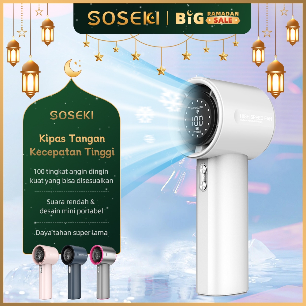 SOSEKI High-Speed Portable Handheld Fan/Kipas Mini Portabel/100 Tingkat Kecepatan Angin/Tampilan Digital