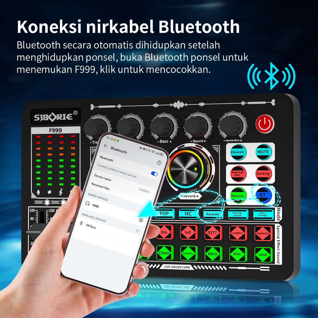 SOUND CARD F999 SoundCard Bluetooth compatible External Wireless Pengurangan Kebisingan untuk Streaming Langsung