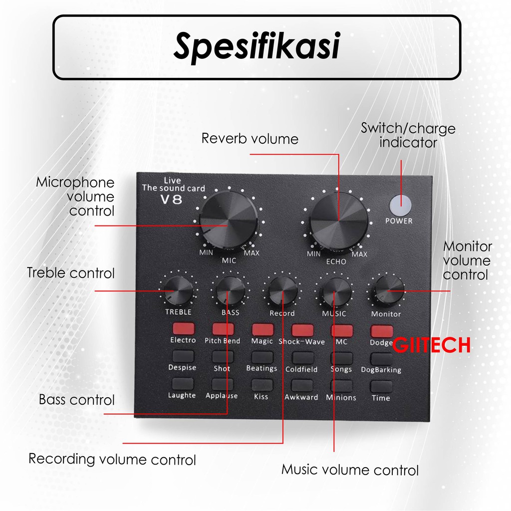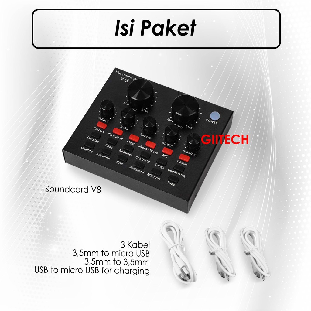 SOUNDCARD AUDIO USB EXTERNAL EFEK SUARA ELEKTRONIK SOUND CARD V8S HIGH QUALITY EFFECT MIC