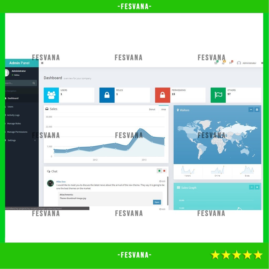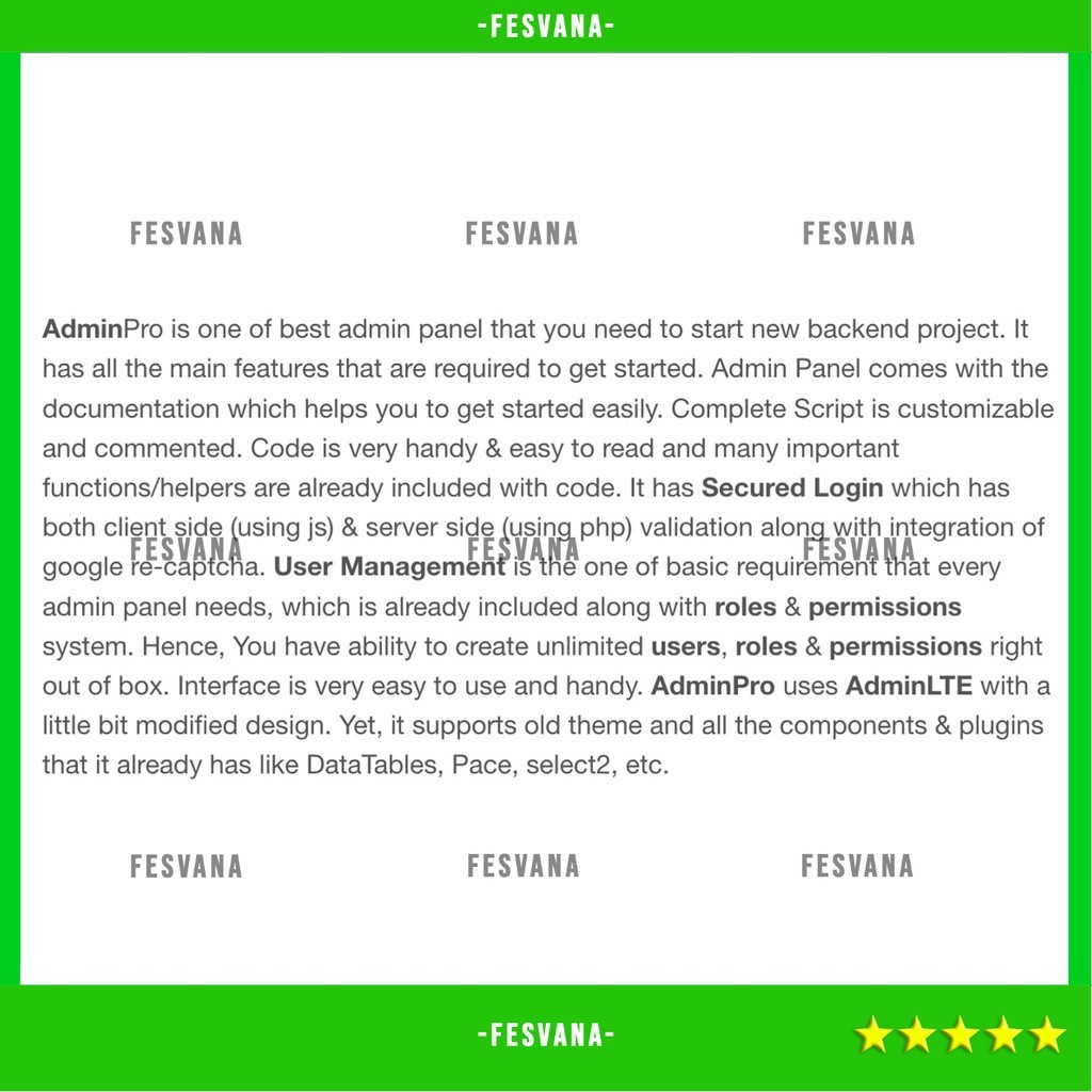 SOURCE CODE APLIKASI WEB ADMINPRO - LOGIN + MULTI USER MANAGEMENT + CODEIGNITER + ROLES & PERMISSION + BOOTSTRAP 4 + ADMINLTE D196 FESVANA