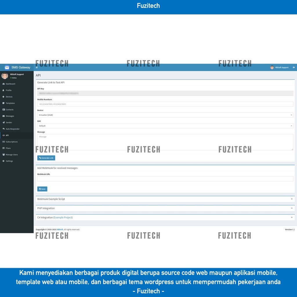 SOURCE CODE APLIKASI WEB SMS GATEWAY - USE YOUR ANDROID PHONE AS SMS/MMS GATEWAY (SAAS) D332 FUZITECH