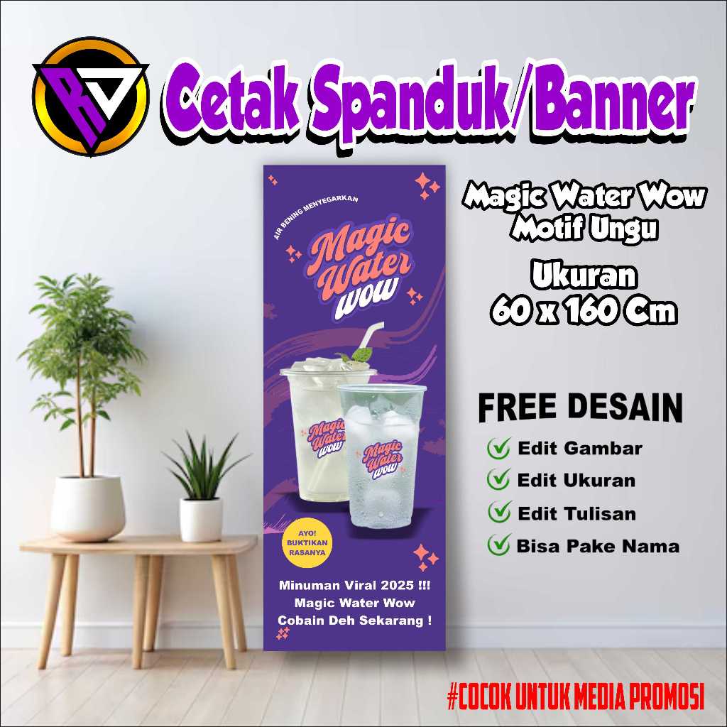 SPANDUK BANNER MAGIC WATER WOW MOTIF UNGU