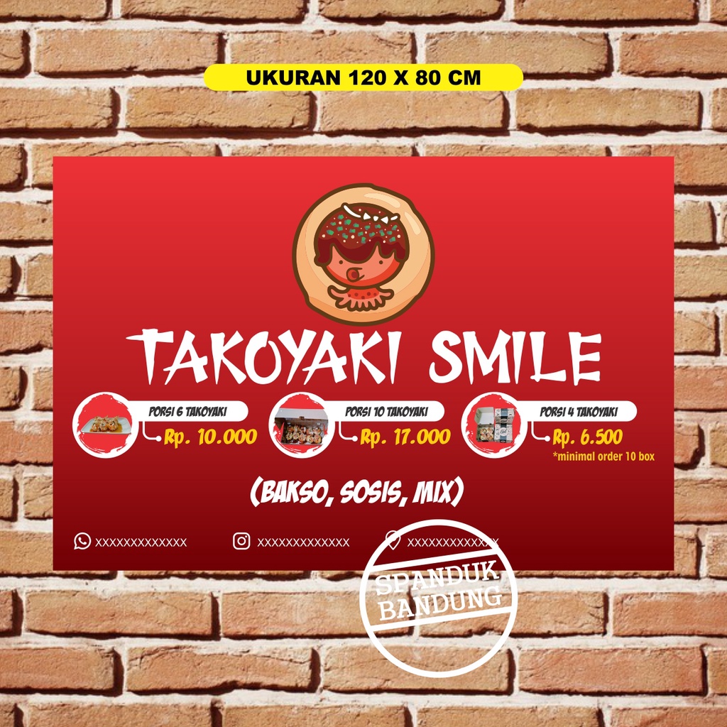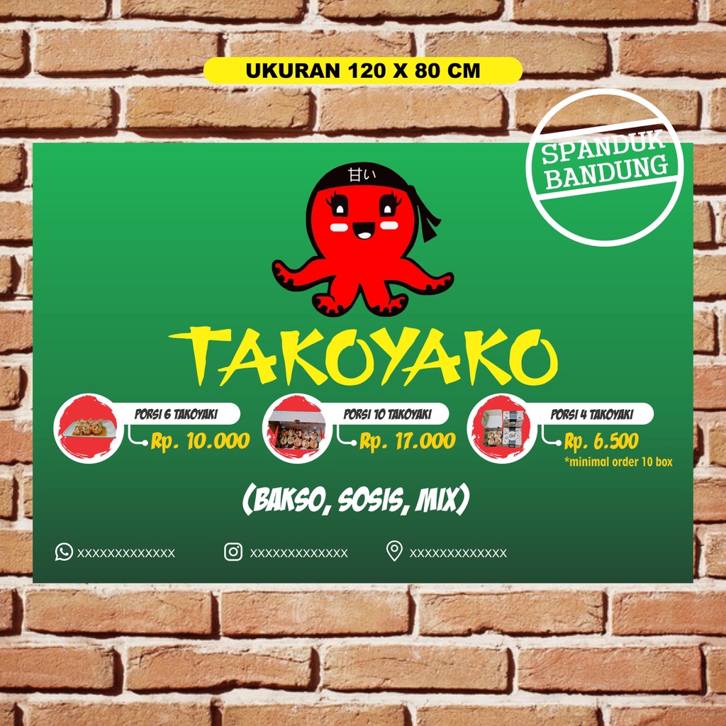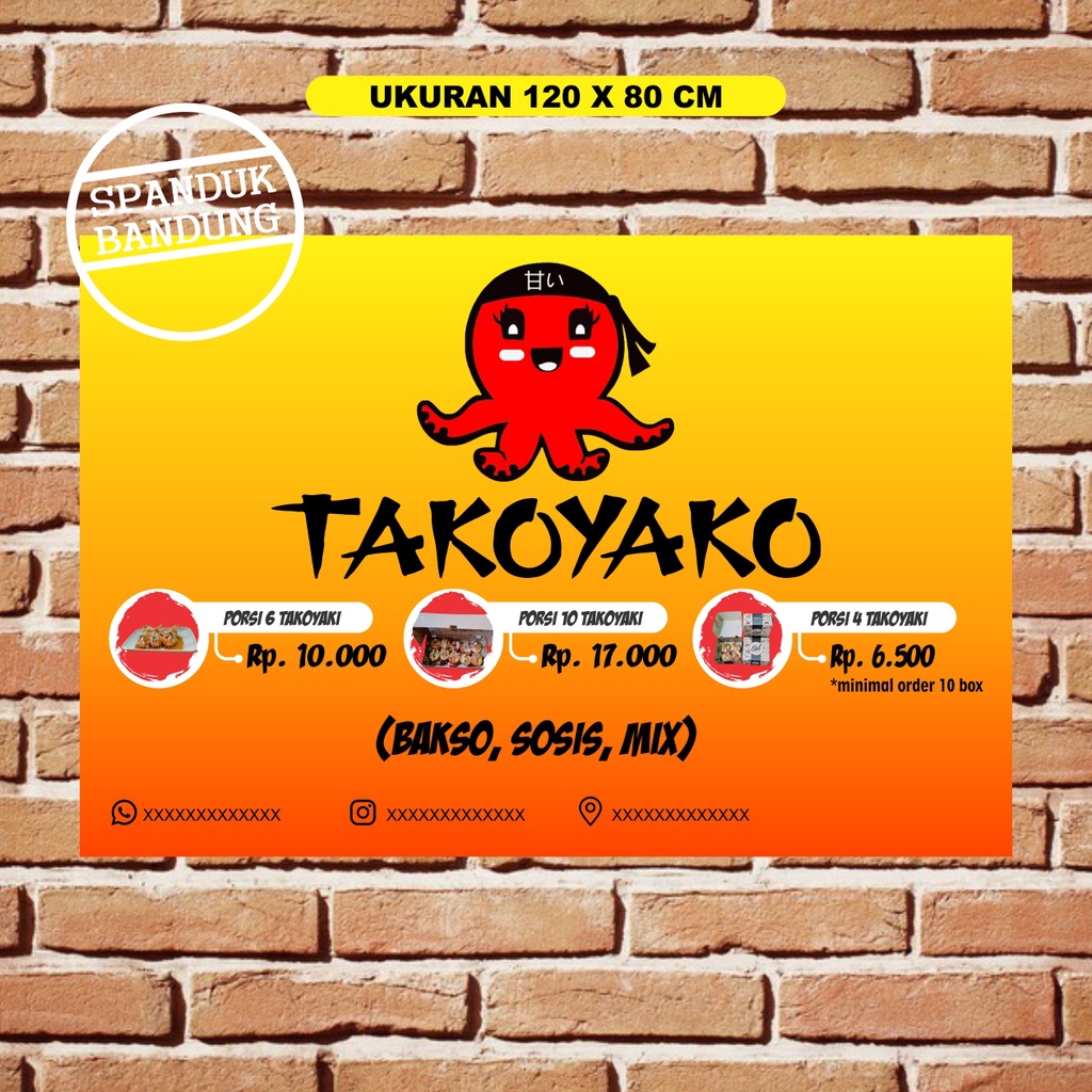 SPANDUK TAKOYAKI UKURAN 120 X 80 CM COSTUM BISA REQUEST / BANNER TAKOYAKI / SPANDUK TAKOYAKI / PLANG TAKOYAKI