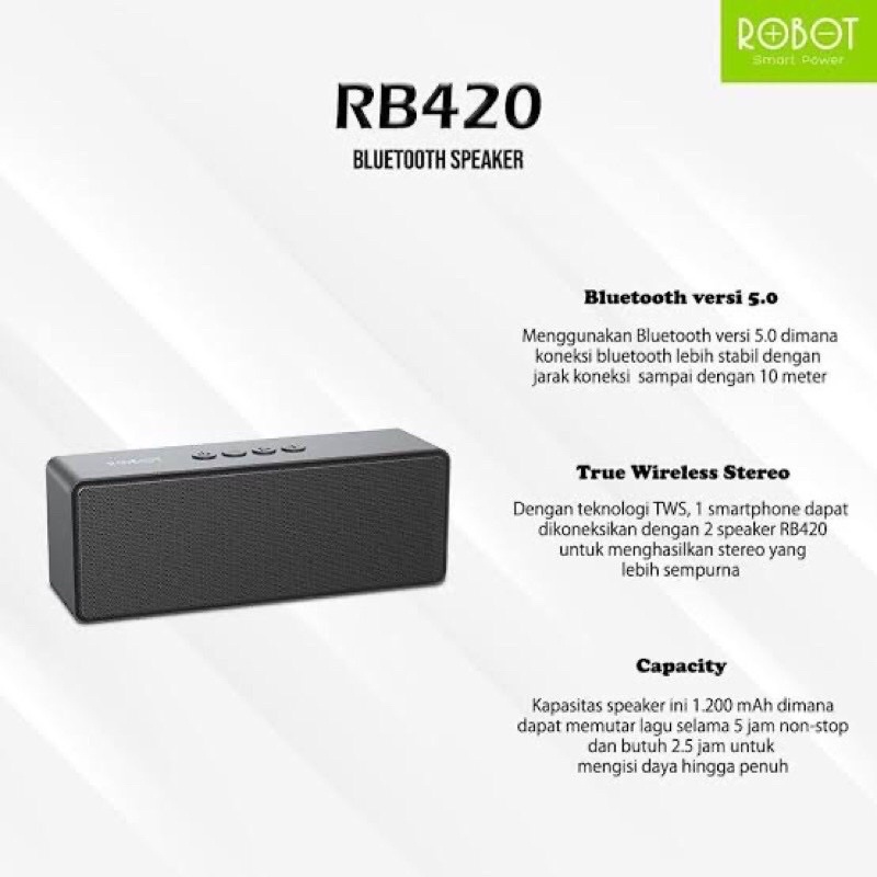 SPEAKER ROBOT BLUETOOTH 5.0 RB550 TIMER/RB430 Hifi/RB420 10wat/RB210/RB100 Dots Portable Bass