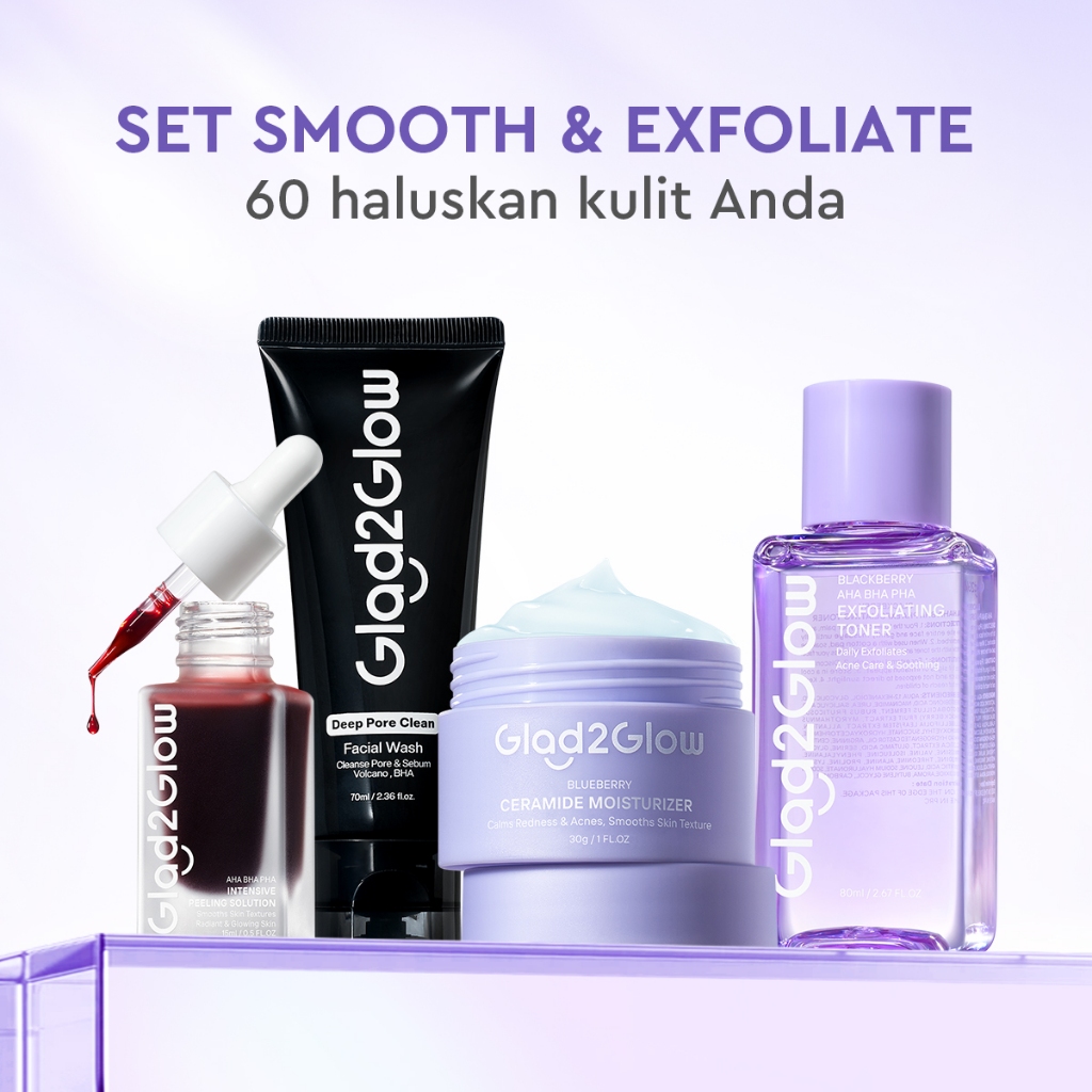 [HEMAT 60K]Glad2Glow Kulit Halus Bundle 7in1 eksfoliasi wajah Skincare Set-Pulihkan/Cerah Krim+Glowing Serum/Peeling Solution+ Cleanser+Eksfoliasi Toner-peeling whitening Moisturizer facial wash Pelembab skincare 1 set lengkap G2G glad2glow official store