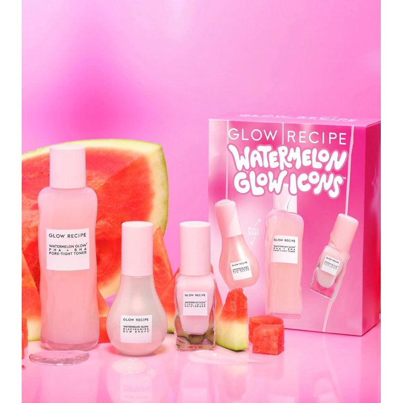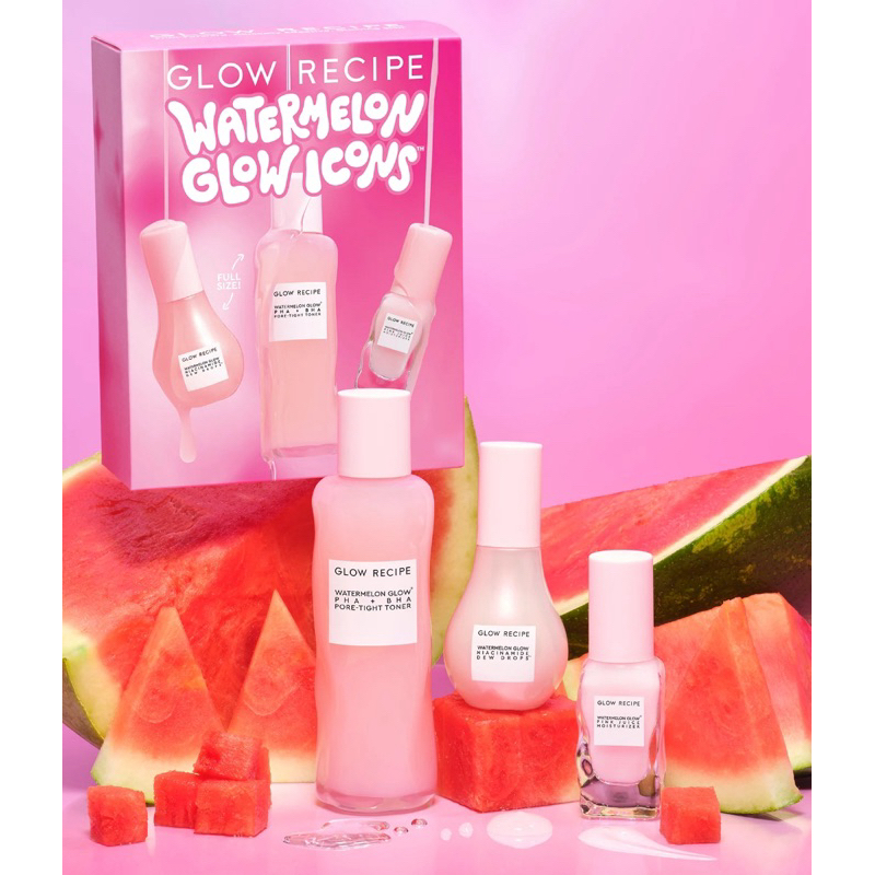 SPECIAL SET Glow Recipe Watermelon Glow Icons (watermelon glow pore tight toner + watermelon glow niacinamide dew drops + pink juice moisturizer)