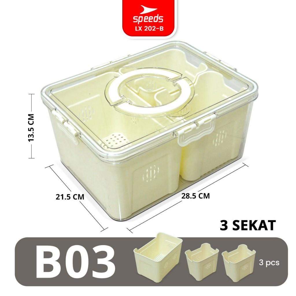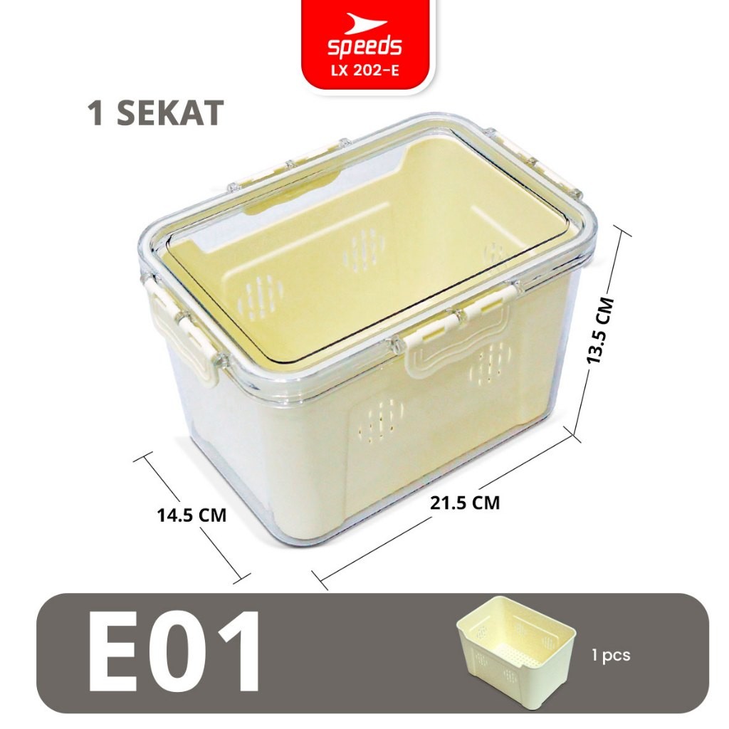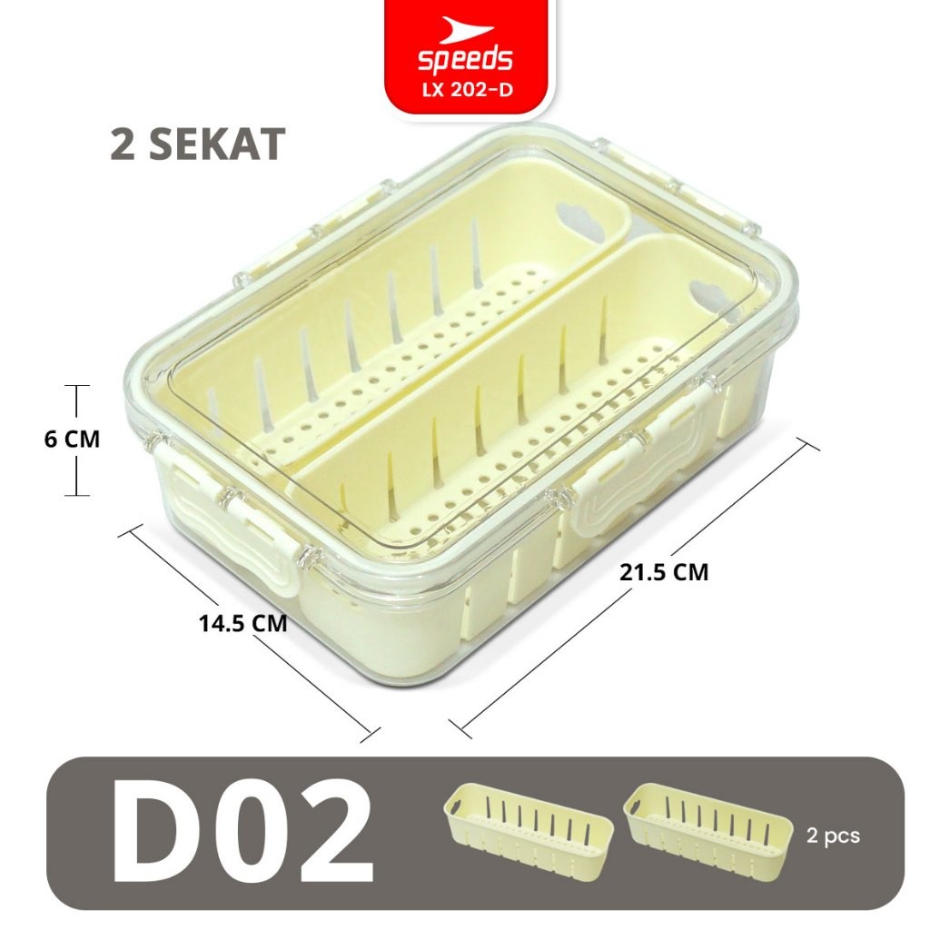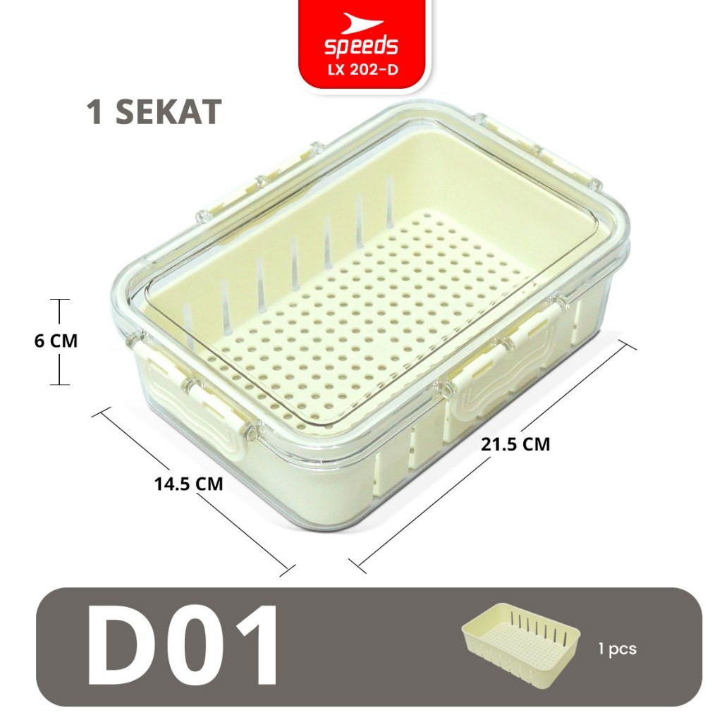 SPEEDS Food Container Tempat Penyimpanan Makanan Bawang Cabai Dengan Saringan Tutup Transparan Bumbu Sayuran Dapur Rak Kulkas 202-A