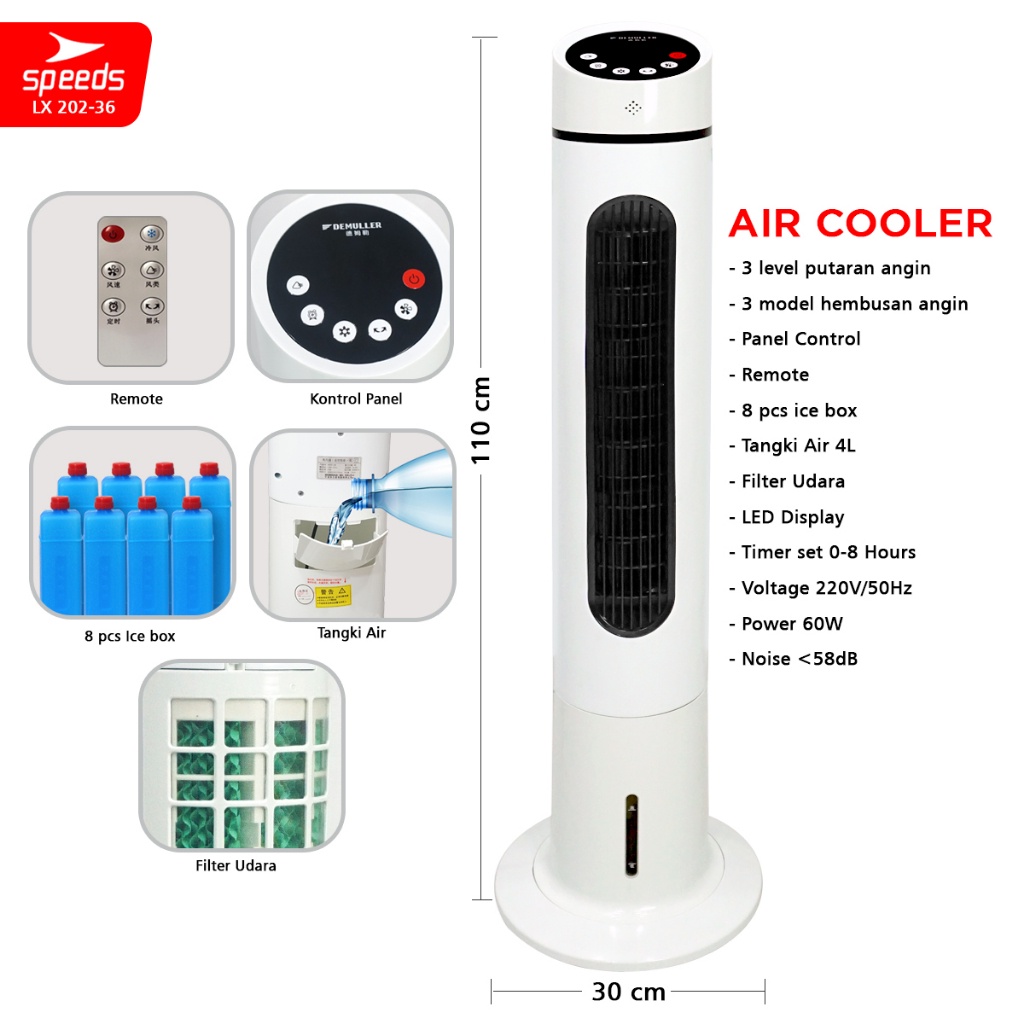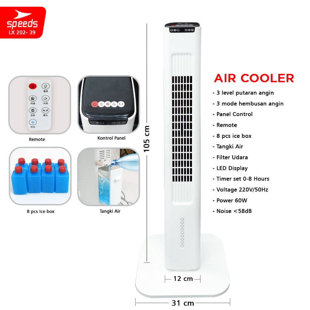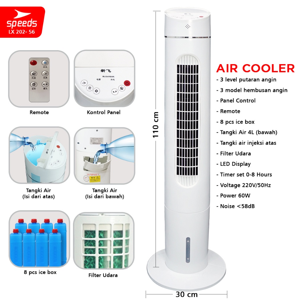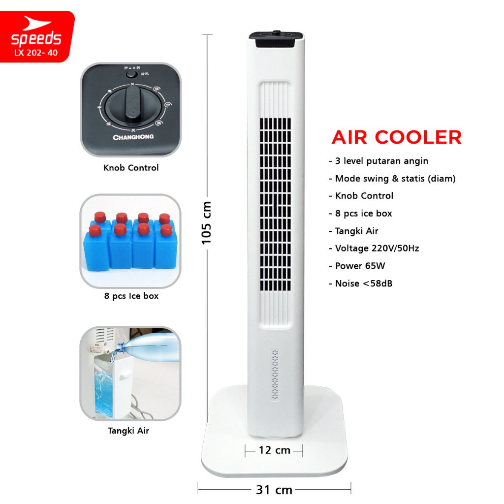 SPEEDS Kipas Angin Portable Cooling Air Conditiener Standing Vortex Pendingin Ruangan 202-48