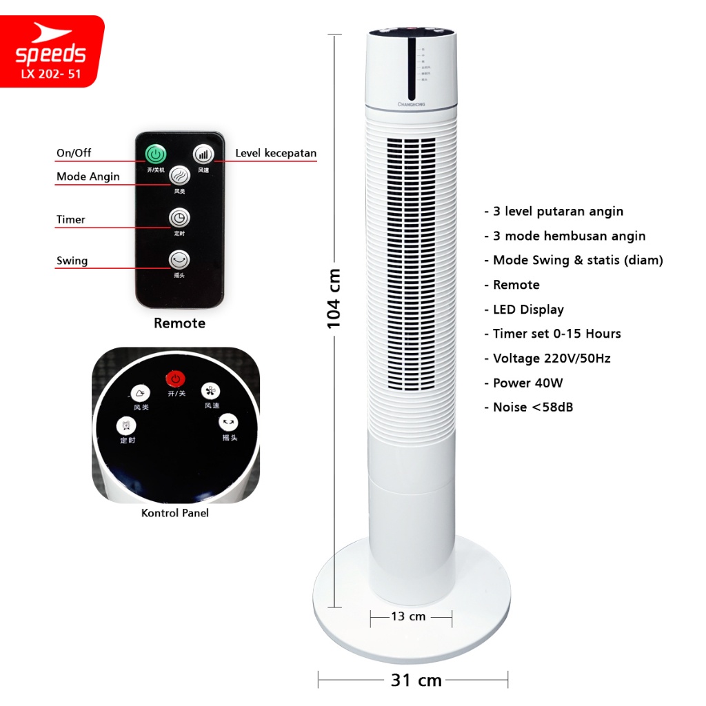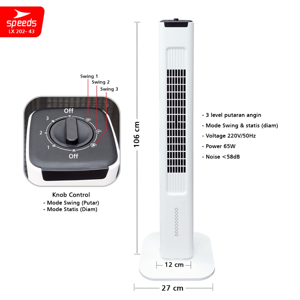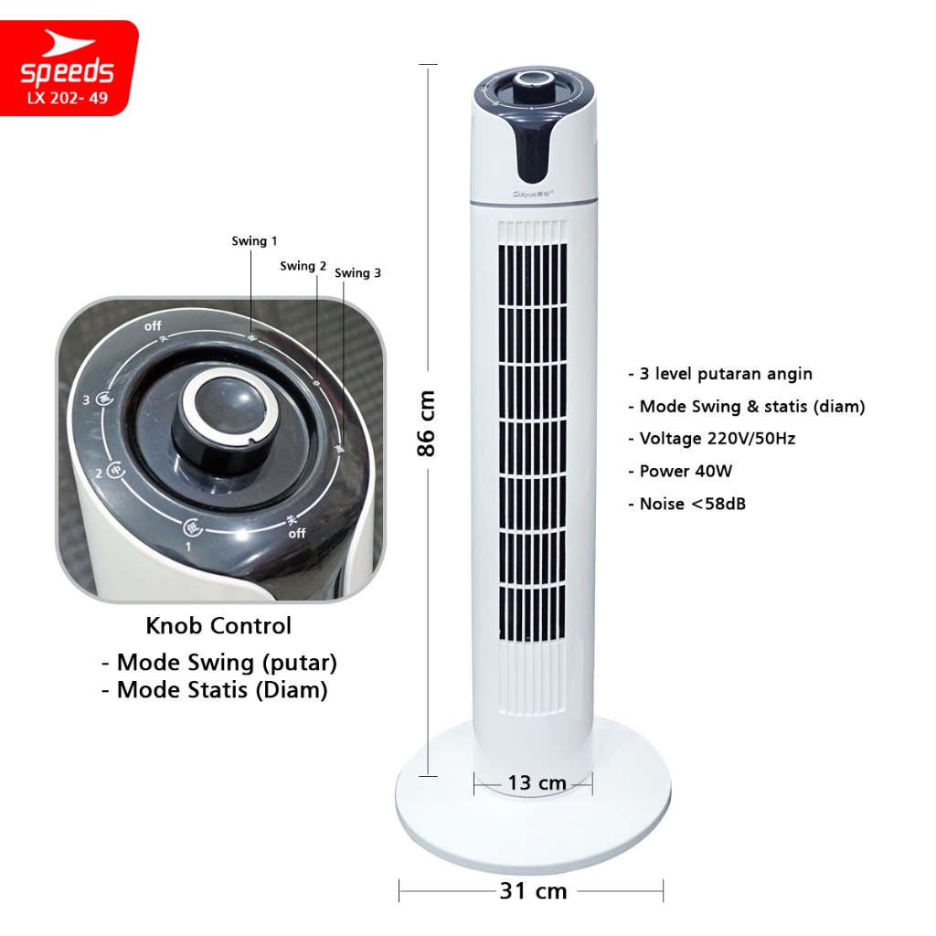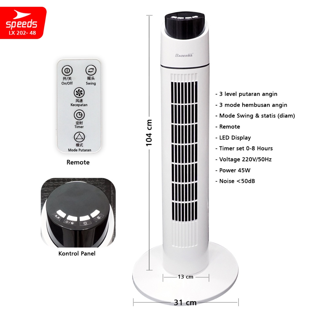 SPEEDS Kipas Angin Portable Cooling Air Conditiener Standing Vortex Pendingin Ruangan 202-48