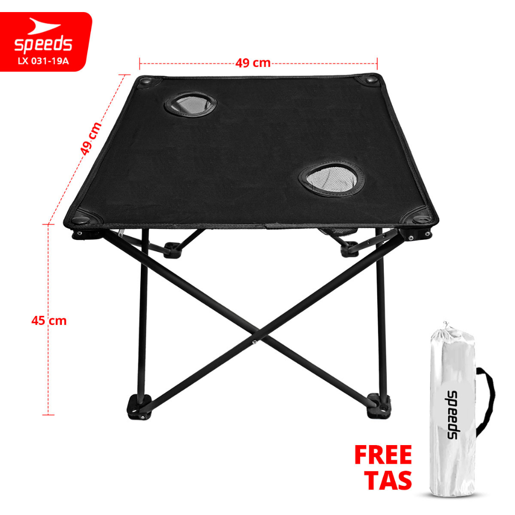 SPEEDS Meja Lipat Camping Outdoor Folding Picnic Table Meja Lipat Serbaguna Bahan Kain Kuat 031-19 Hitam