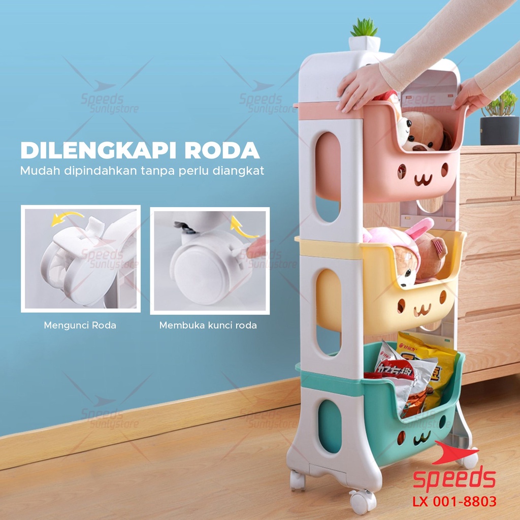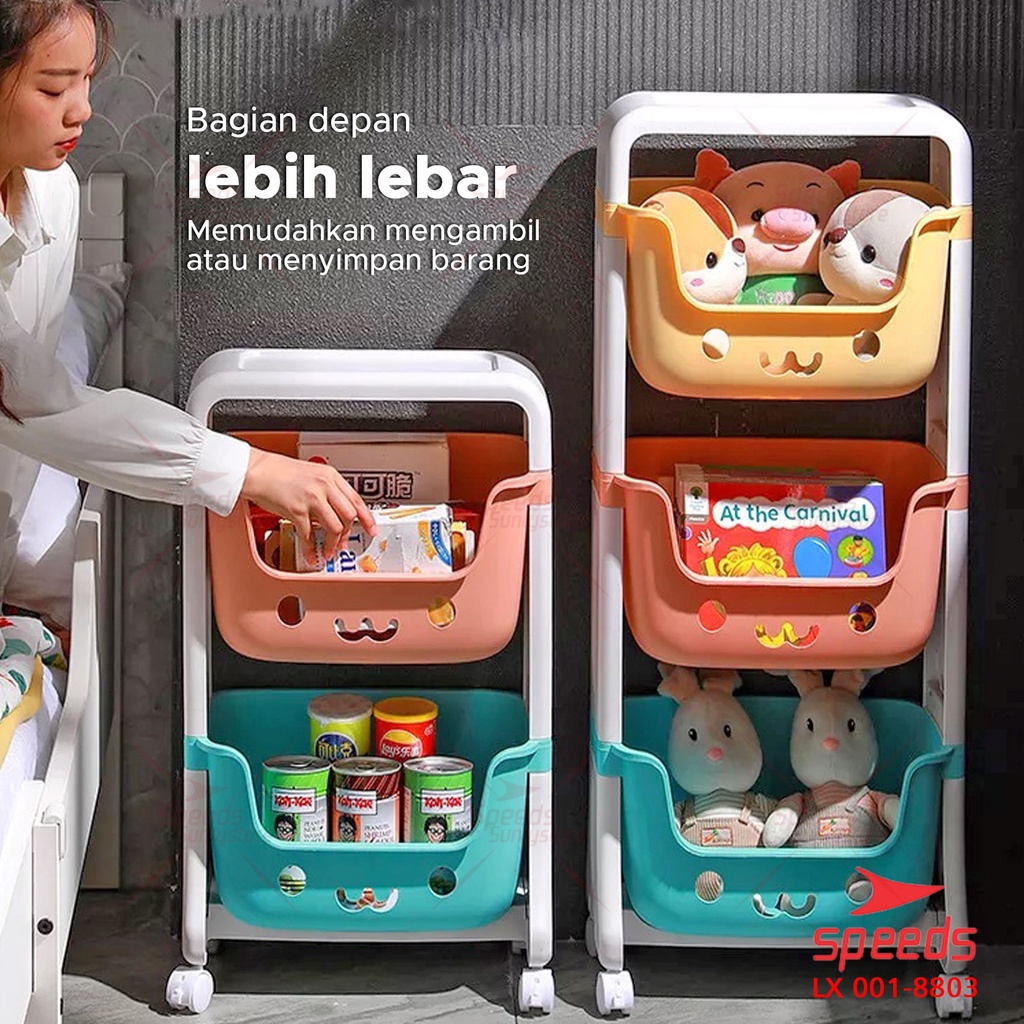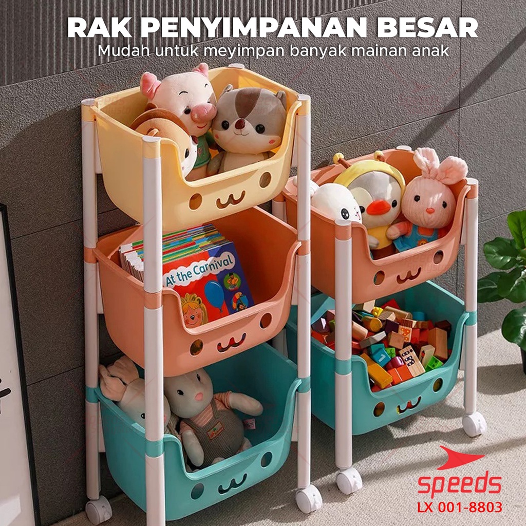 SPEEDS Rak Mainan Rak Susun Tempat Penyimpanan Mainan Kotak Mainan Roda Serbaguna Toy Storage Untuk Anak 001-8803
