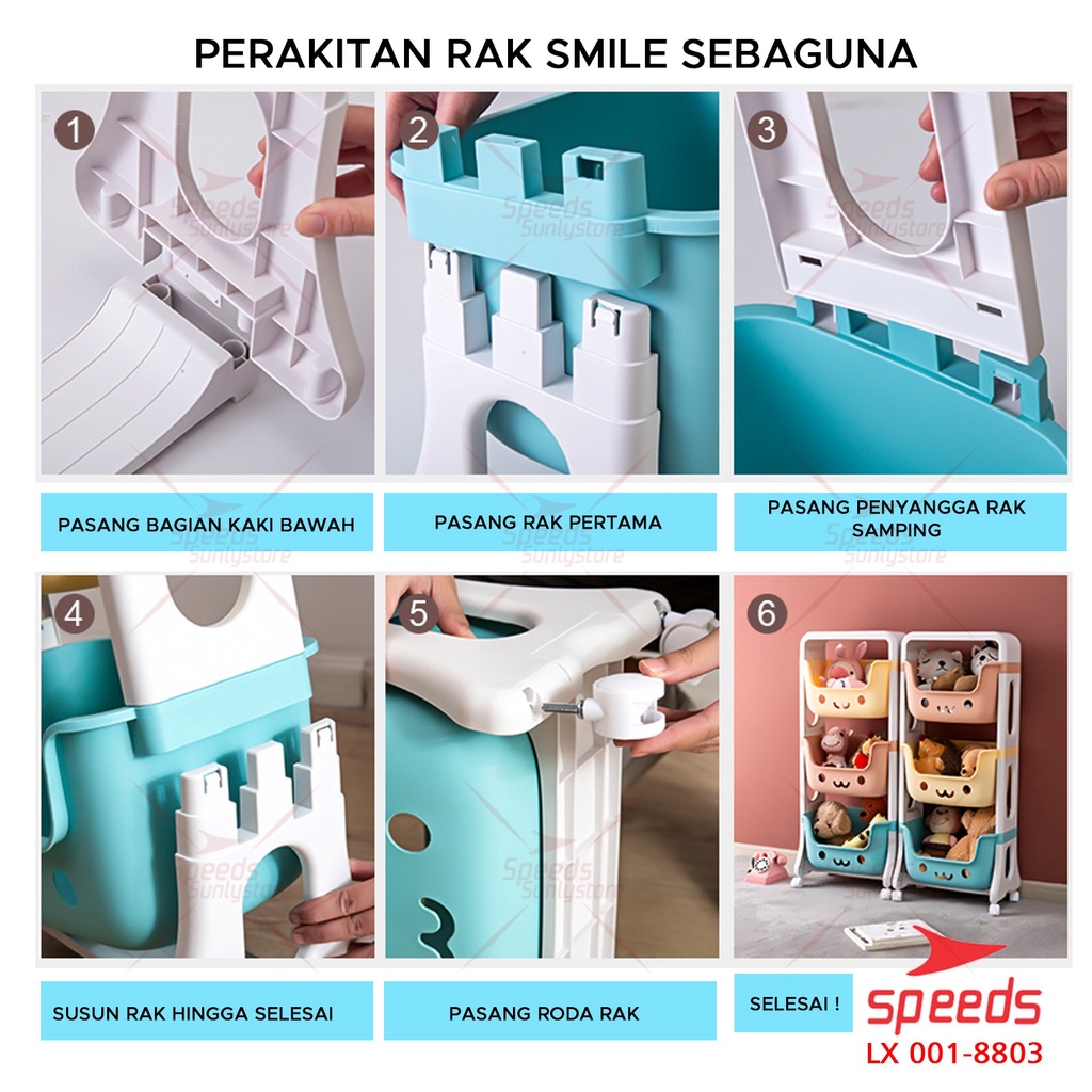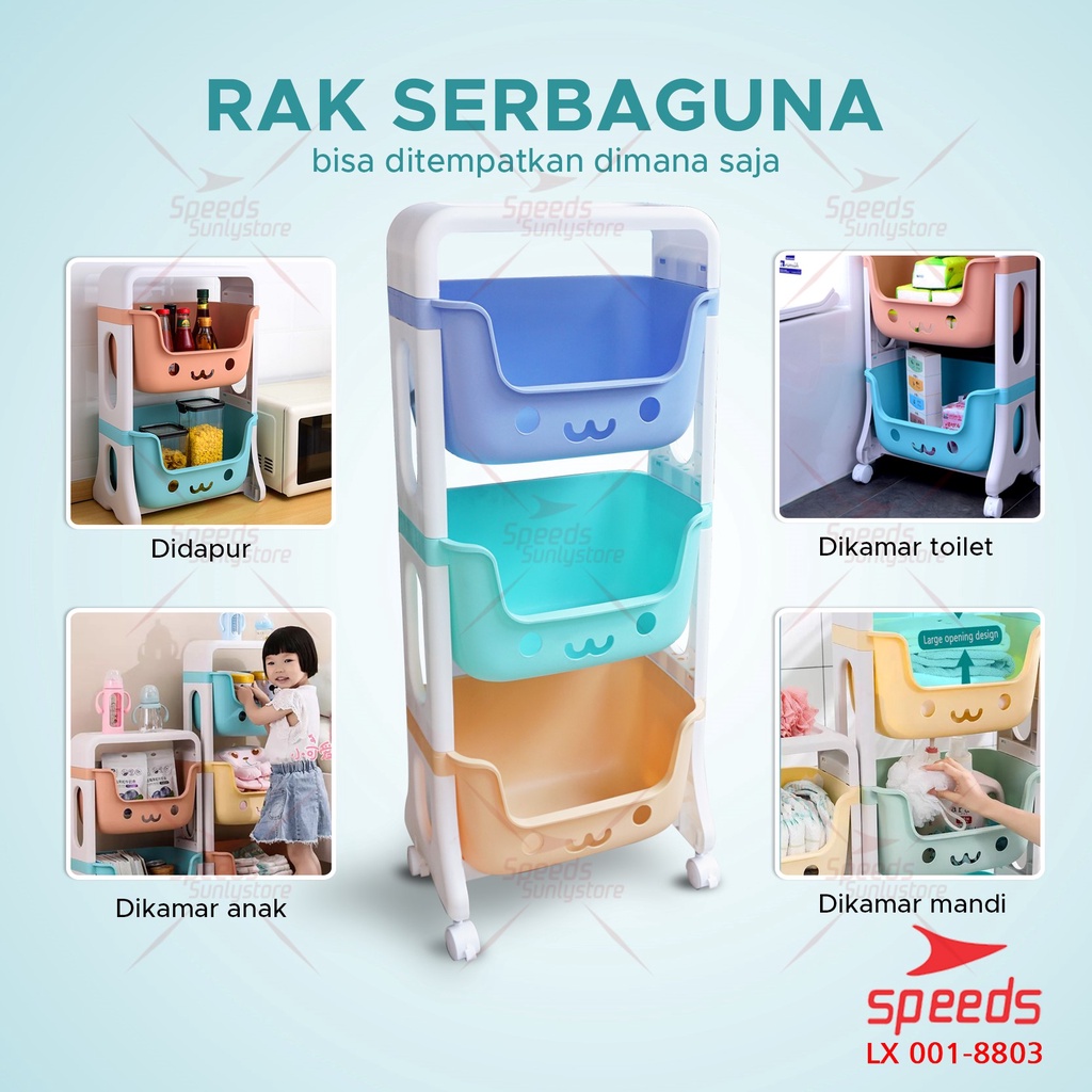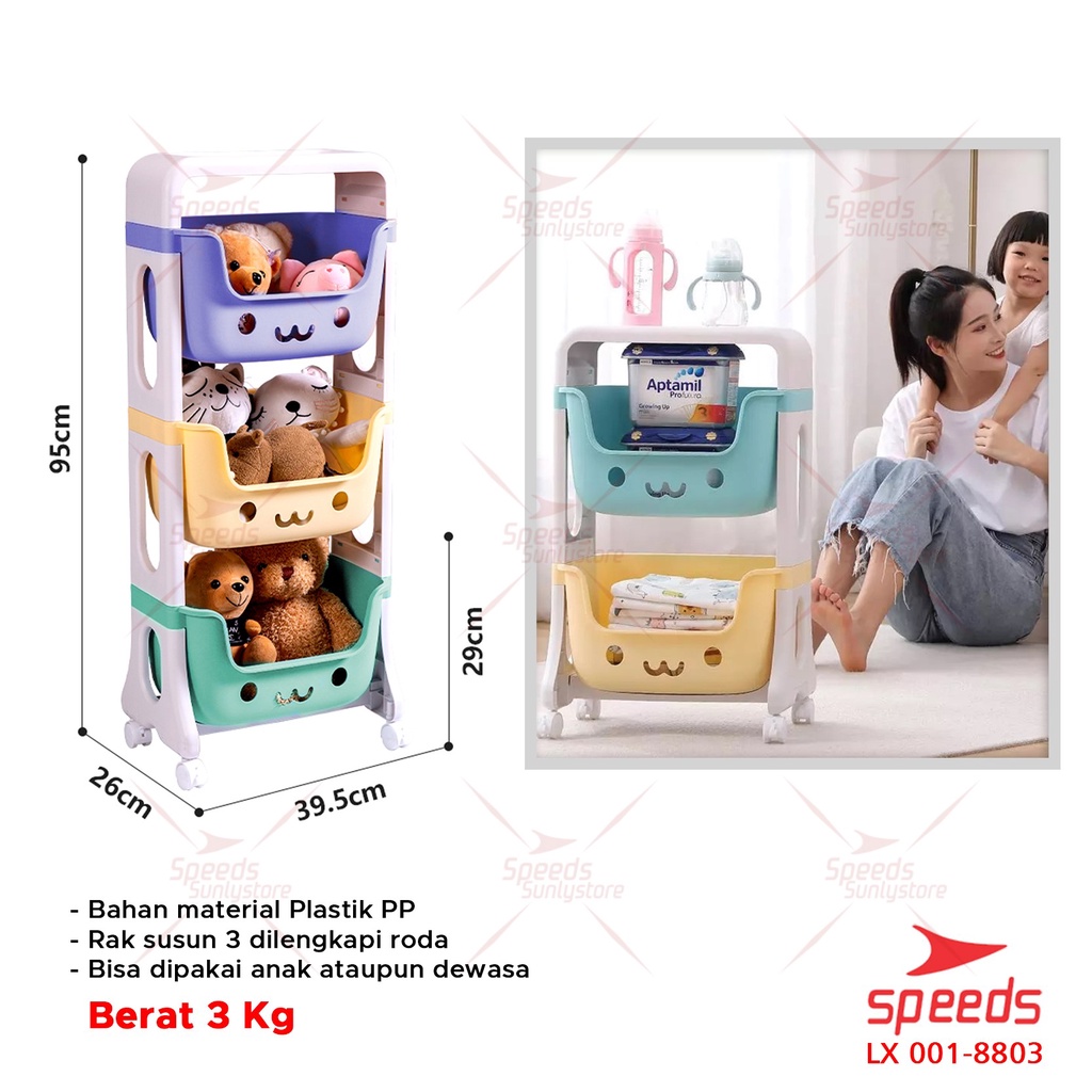 SPEEDS Rak Mainan Rak Susun Tempat Penyimpanan Mainan Kotak Mainan Roda Serbaguna Toy Storage Untuk Anak 001-8803