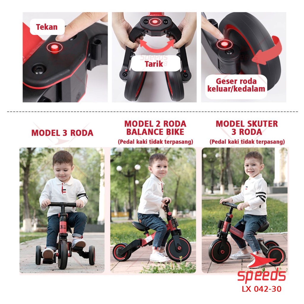 SPEEDS Sepeda Mini Roda 3 2IN1 Sepeda Anak Keseimbangan Taxi Push Bike Kick Bike 071-4